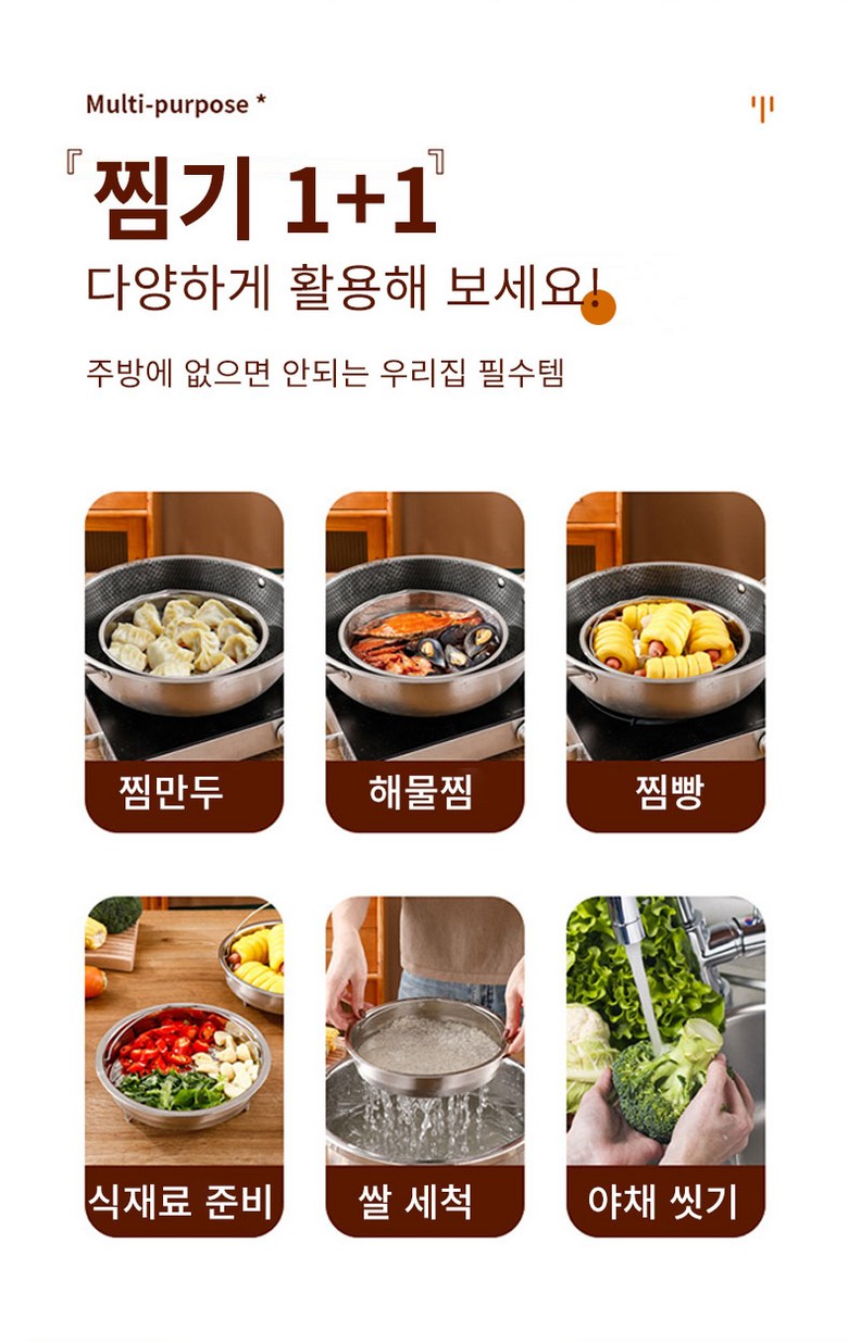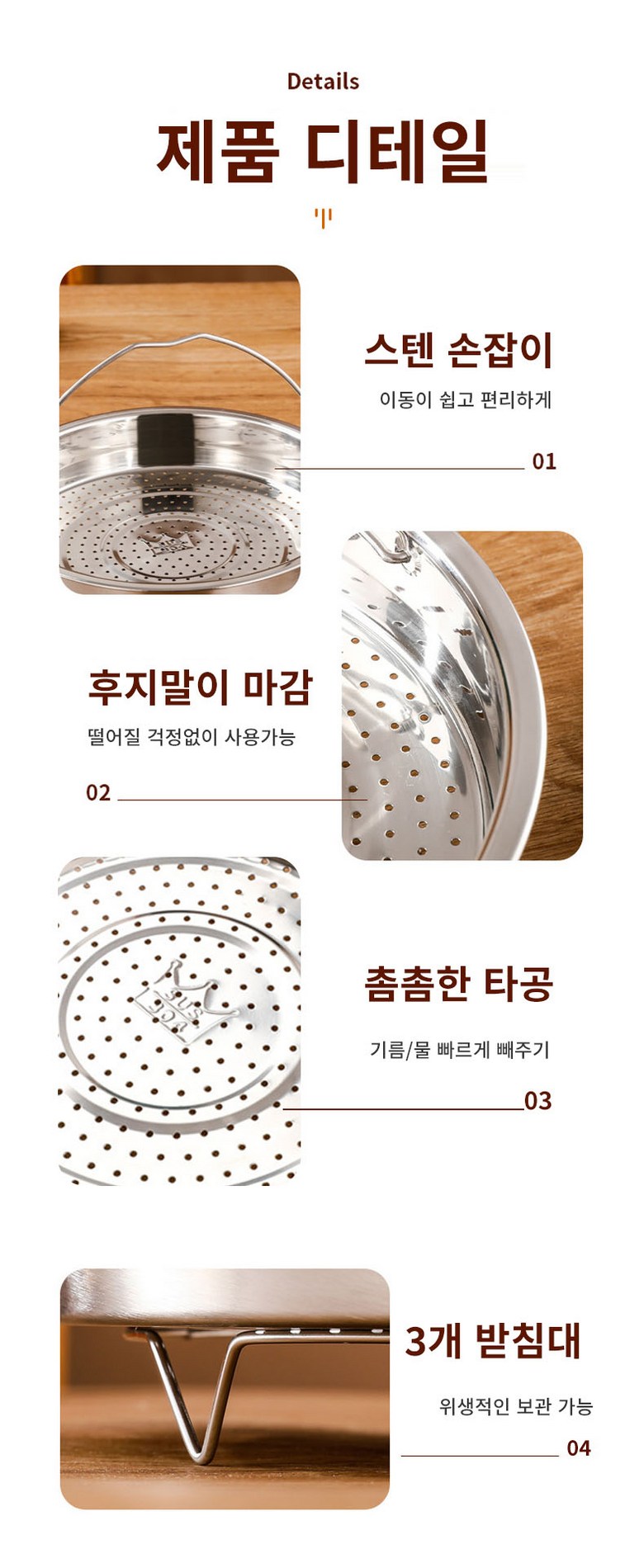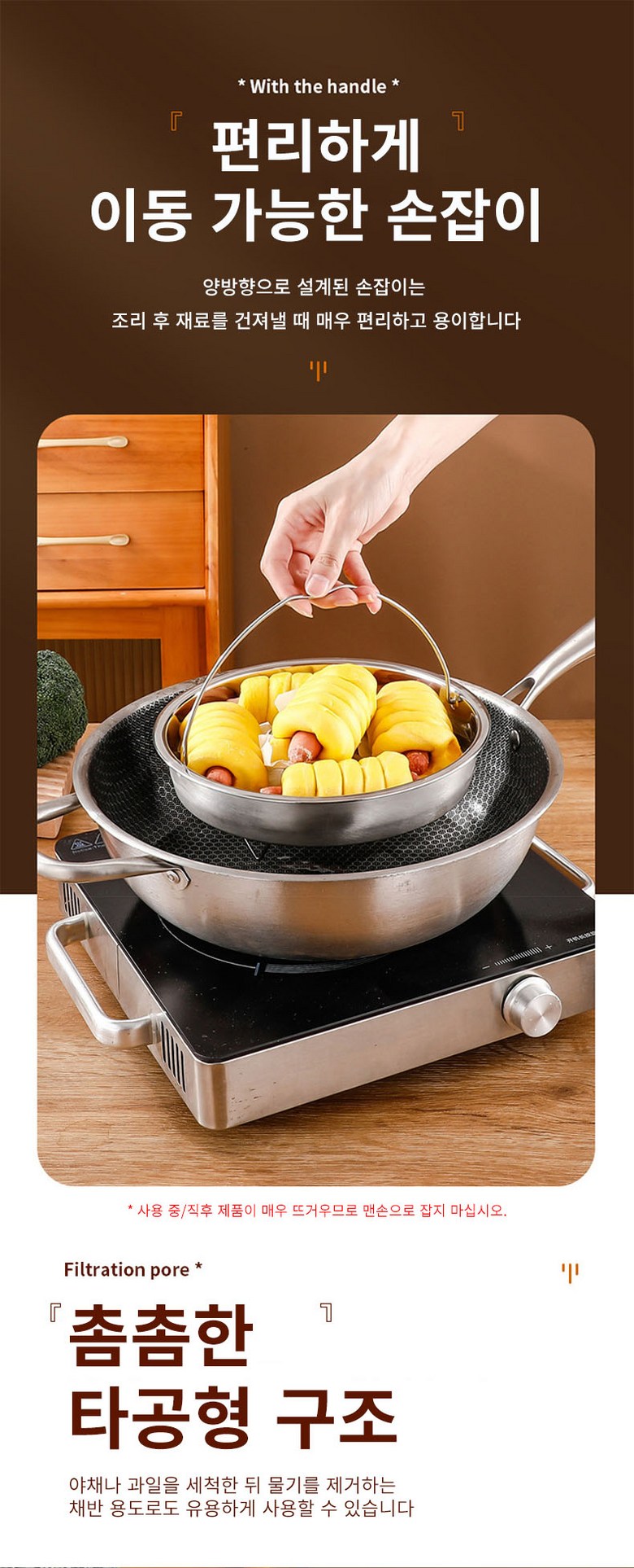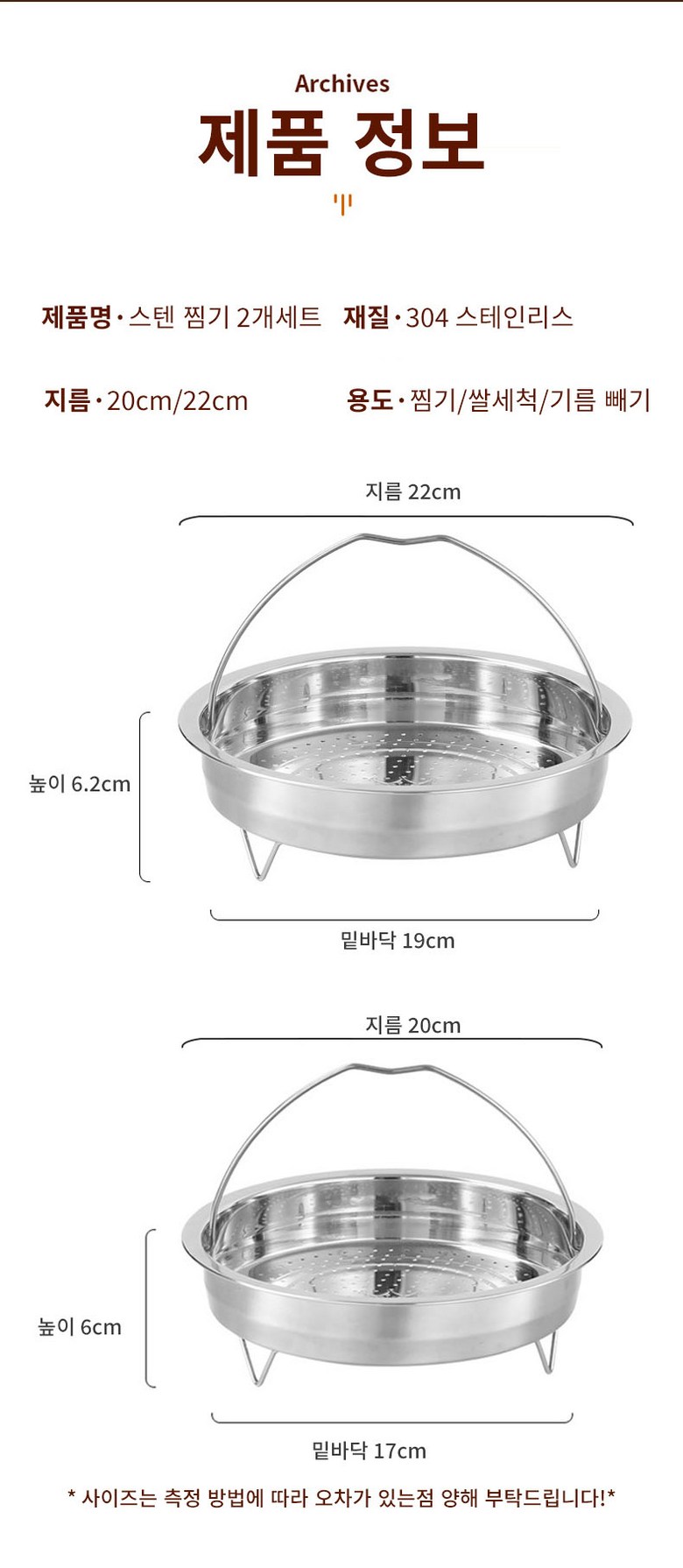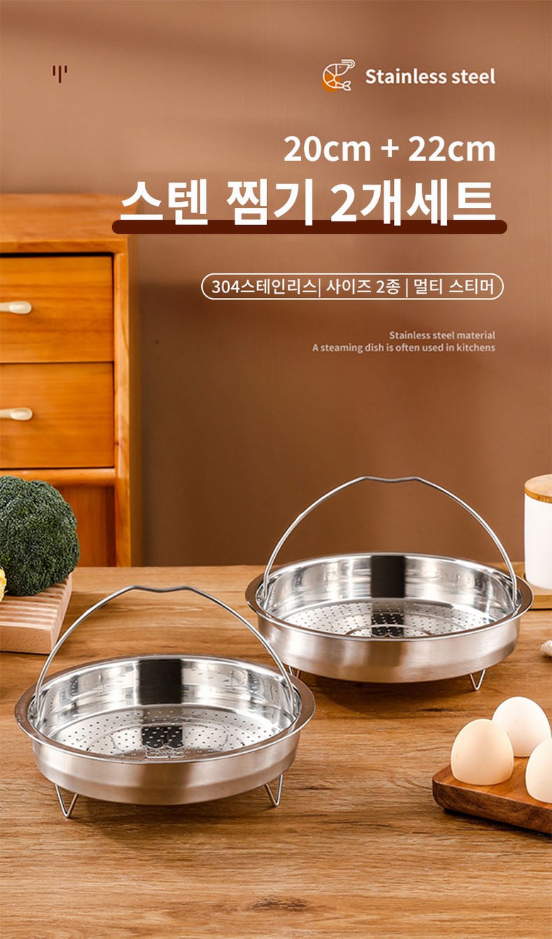 SMABAT 스텐 찜기 2개세트 손잡이 채반 304 스테인리스 만능 찜기 물빠짐 채망 20cm+22cm