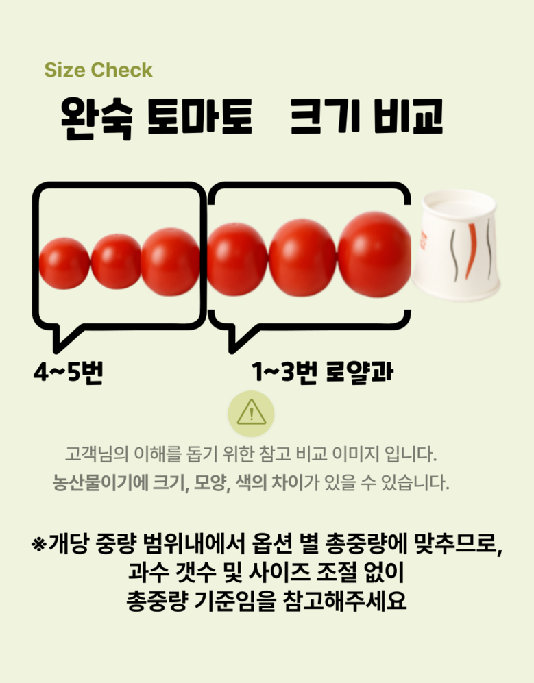 | 품목 또는 명칭 | 완숙 토마토 | 포장단위별 내용물의 용량(중량),수량,크기 | 2kg,5kg,1박스 |