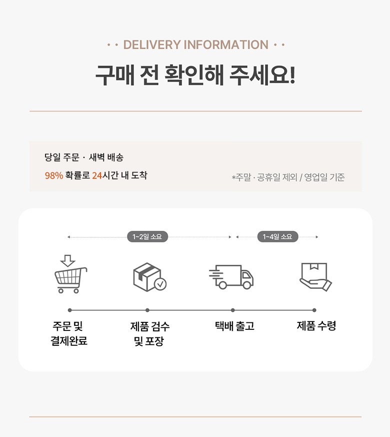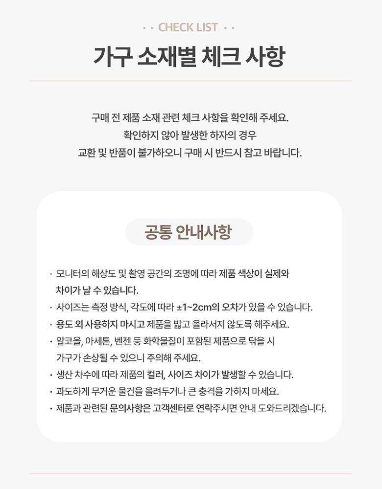 - ㆍ모니터 해상도의 차이로 인해 색상이나 이미지가 실제와 달라, 고객이 단순 변심으로 교환/반품을 무료로 요청하는 경우