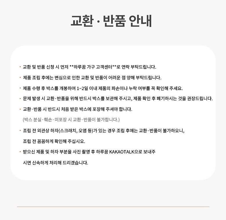 - ㆍ교환/반품에 관한 일반적인 사항은 판매자가 제시사항보다 관계법령이 우선합니다.