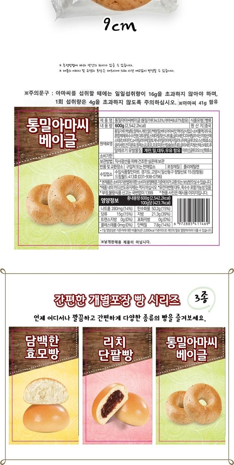 | 제품명 | 통밀 아마씨 베이글 | 식품의 유형 | 빵류 |