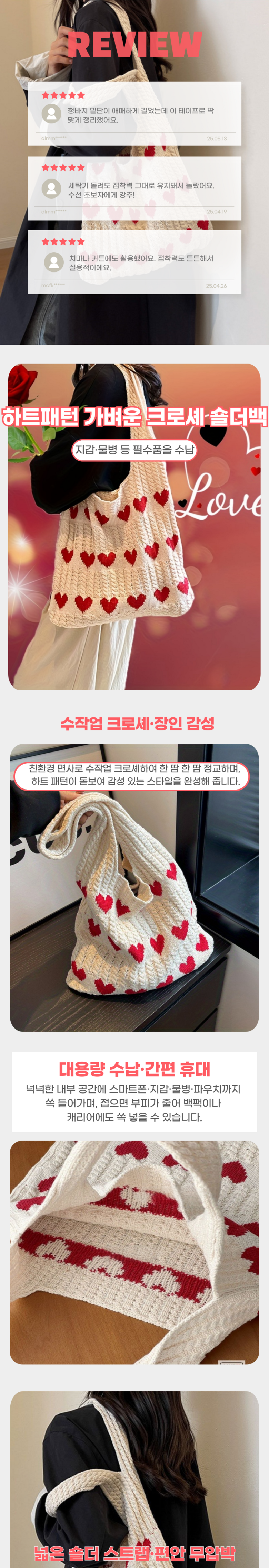 | 품명 및 모델명 | 하트패턴 가벼운 여성용 크로셰 숄더백 | 인증/허가 사항 | 해당사항없음 |