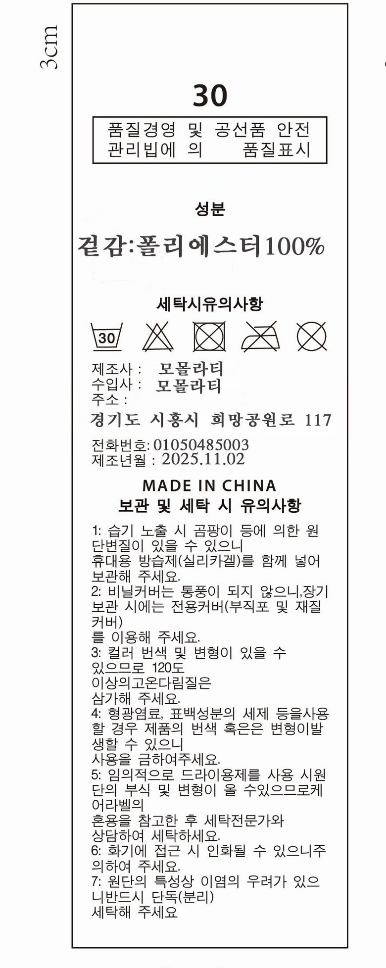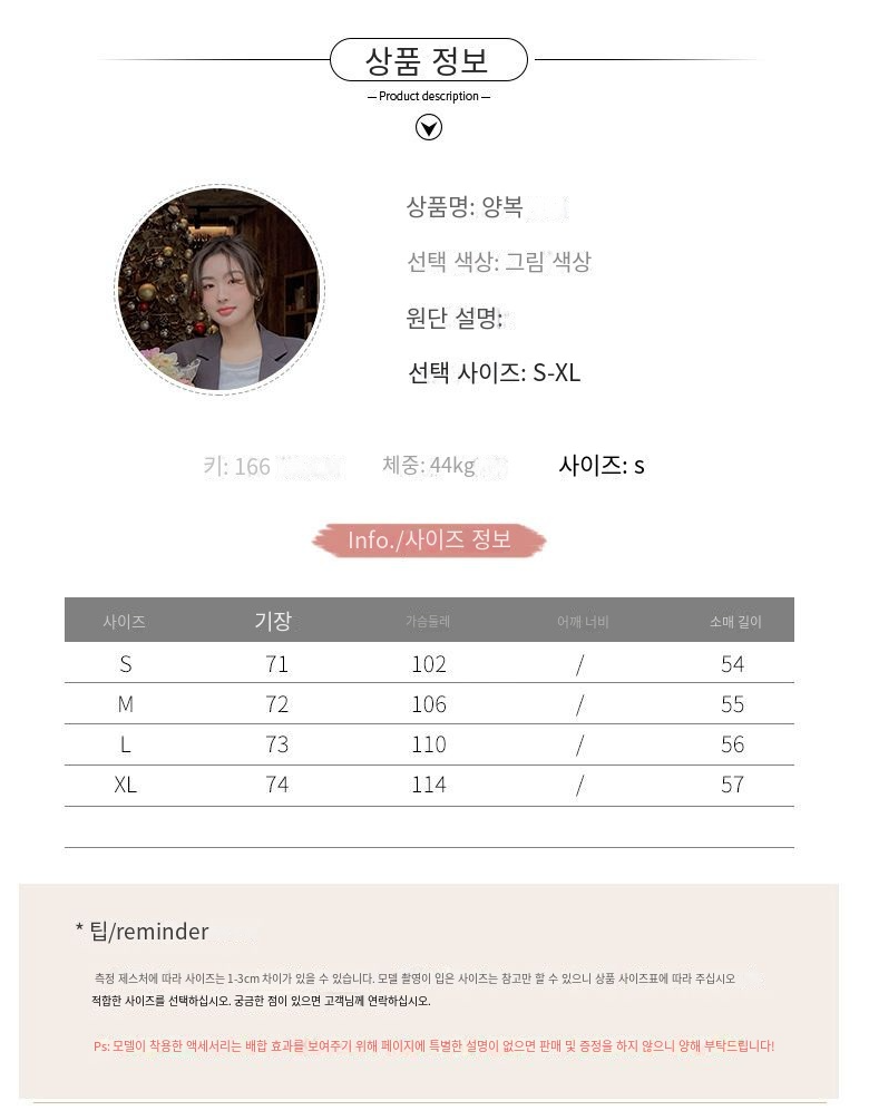 | 제조국 | 상품 상세페이지 참조 | 세탁방법 및 취급시 주의사항 | 상품 상세페이지 참조 |