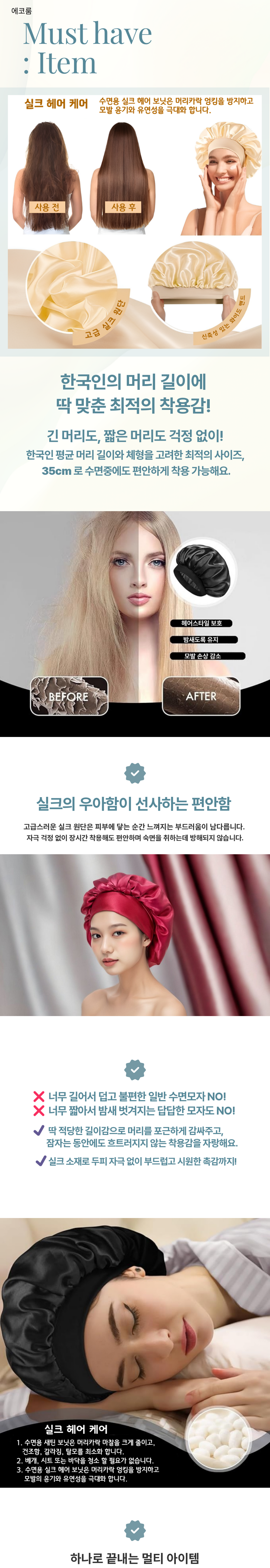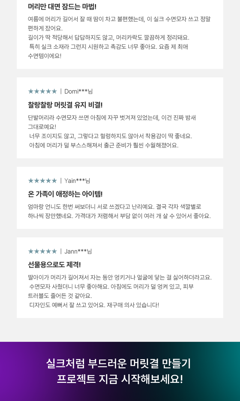 | 종류 | 수면 헤어캡 | 소재 | 실크 새틴 |