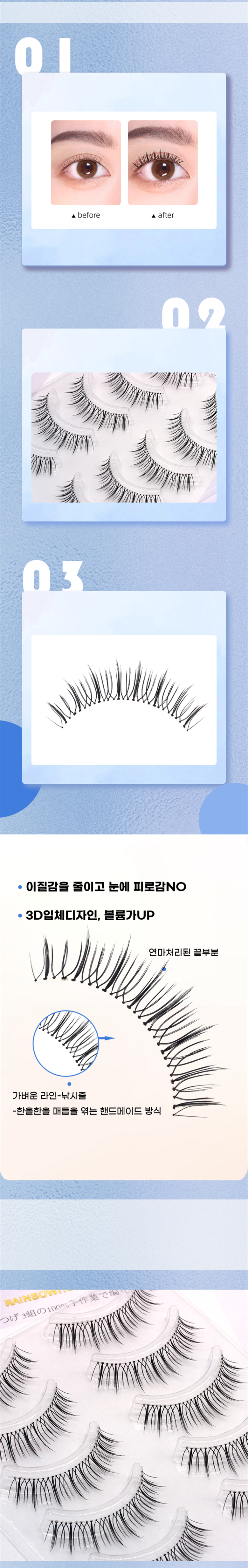 무지개홈 점착구슬 속눈썹 롱래쉬 데일리 자연확장 초보자용 인조속눈썹 눈꼬리 또렷, W8(5쌍), 1개