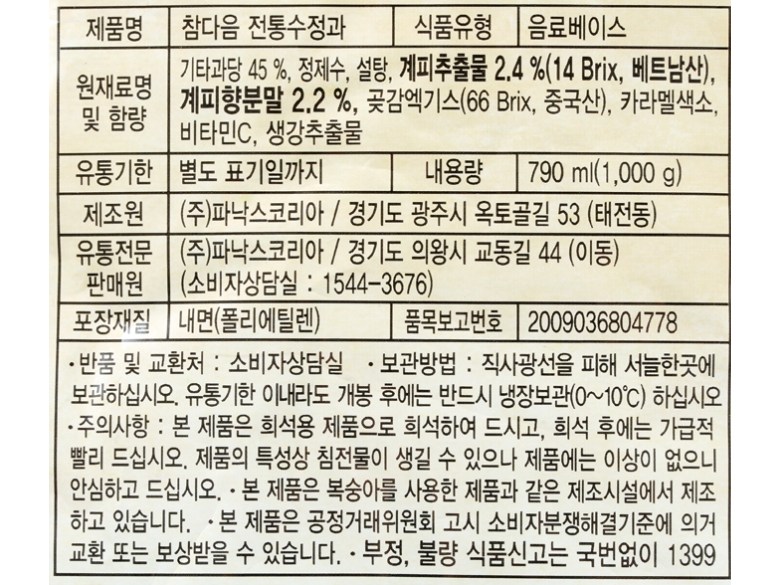 | 제품명 | 상품 상세페이지 참조 | 식품의 유형 | 상품 상세페이지 참조 |