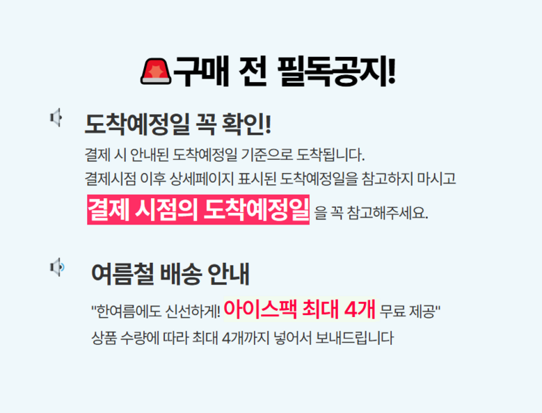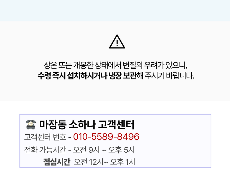 | 배송방법 | 신선/냉장/냉동 | 배송비 | 무료배송 - 도서산간 지역 배송불가 |