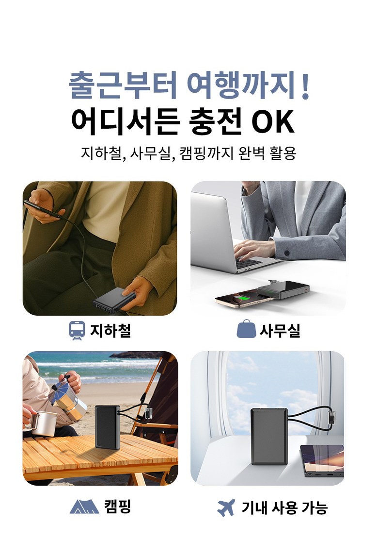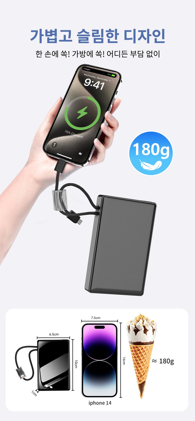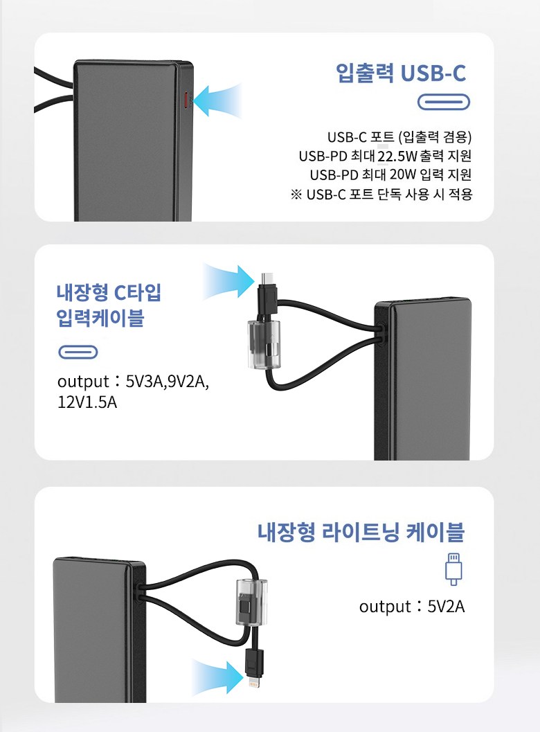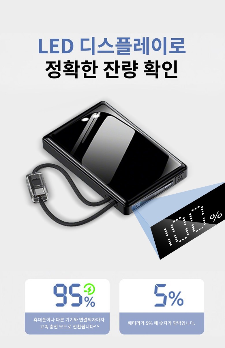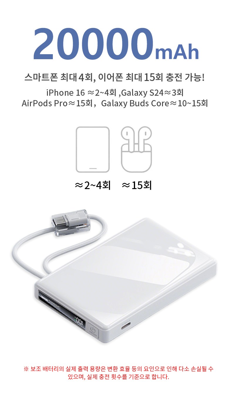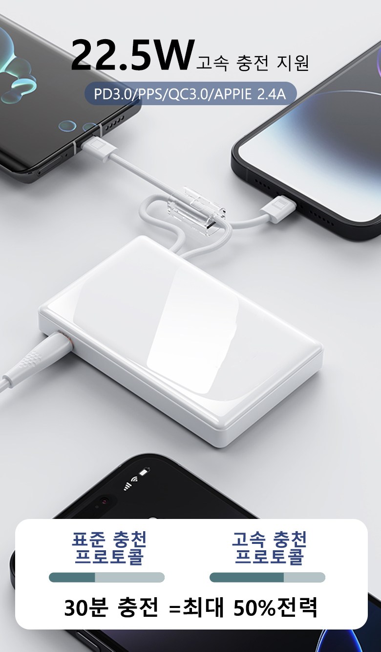 THOUSTA 대용량 보조배터리 20000mAh 고속충전22.5W 미니 일체형 휴대용 보조밧데리 기내반입