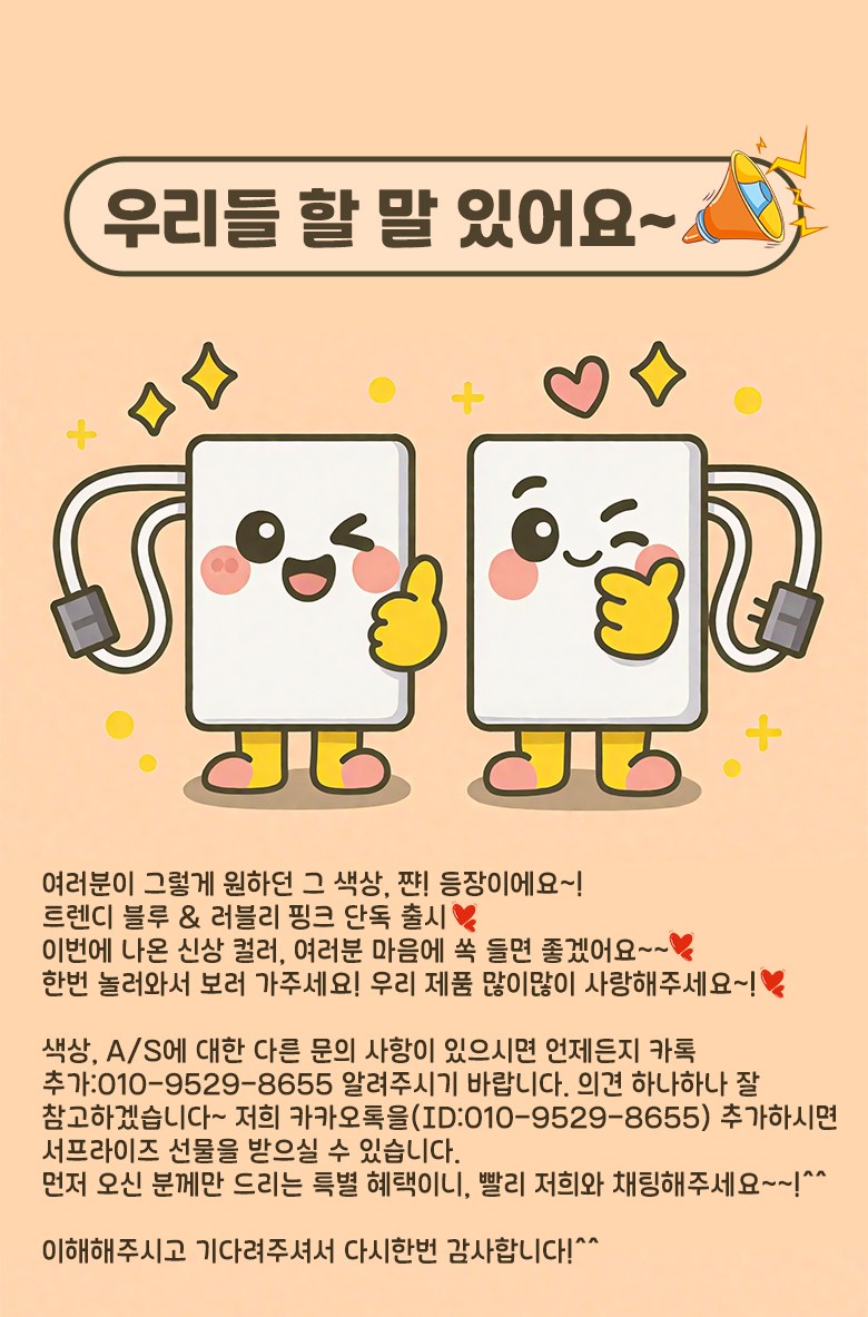 - ㆍ모니터 해상도의 차이로 인해 색상이나 이미지가 실제와 달라, 고객이 단순 변심으로 교환/반품을 무료로 요청하는 경우