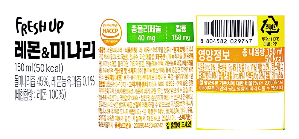 | 제품명 | 레몬&미나리 | 식품의 유형 | 컨텐츠 참조 |