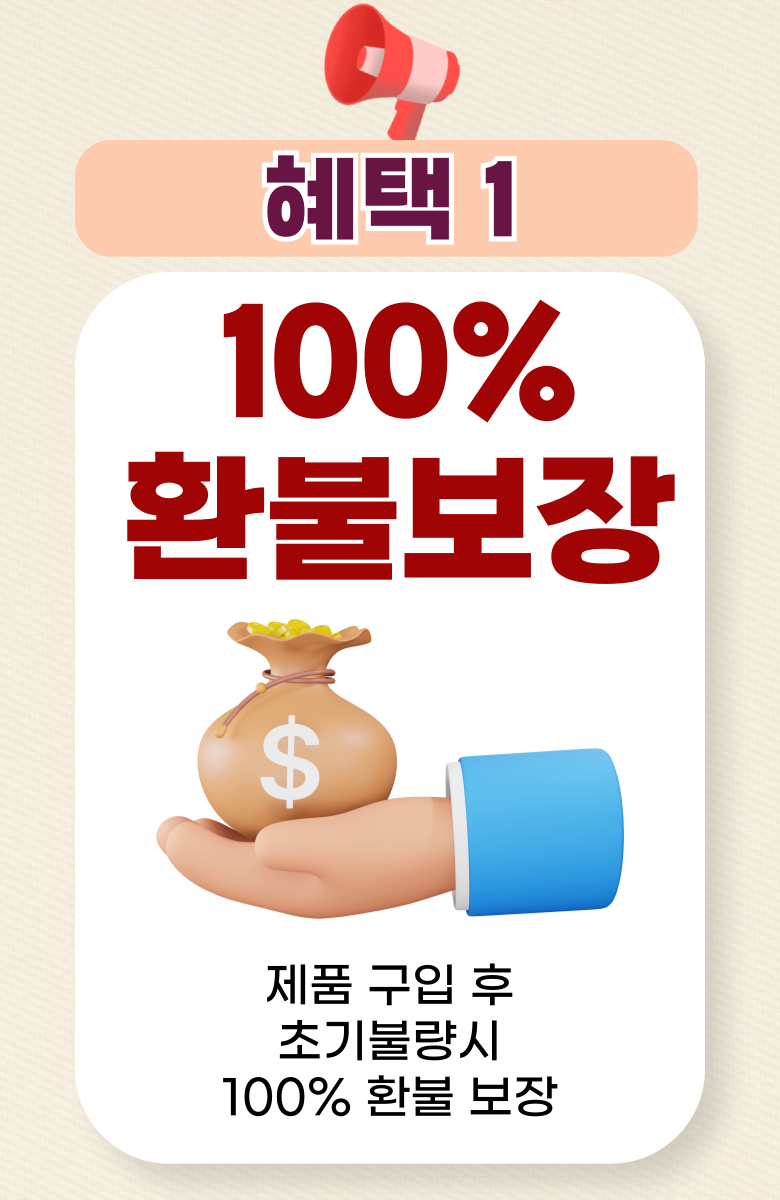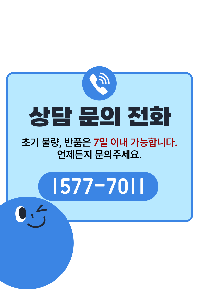 | 교환/반품 신청 기준일 | ㆍ단순변심에 의한 교환/반품은 제품 수령 후 7일 이내까지, 교환/반품 제한사항에 해당하지 않는 경우에만 가능 (배송비용과 교환/반품 비용 왕복배송비 고객부담) ㆍ상품의 내용이 표시·광고의 내용과 다른 경우에는 상품을 수령한 날부터 3개월 이내, 그 사실을 안 날 또는 알 수 있었던 날부터 |