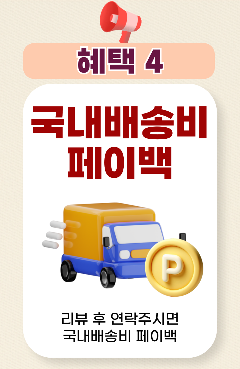 - ㆍ모니터 해상도의 차이로 인해 색상이나 이미지가 실제와 달라, 고객이 단순 변심으로 교환/반품을 무료로 요청하는 경우