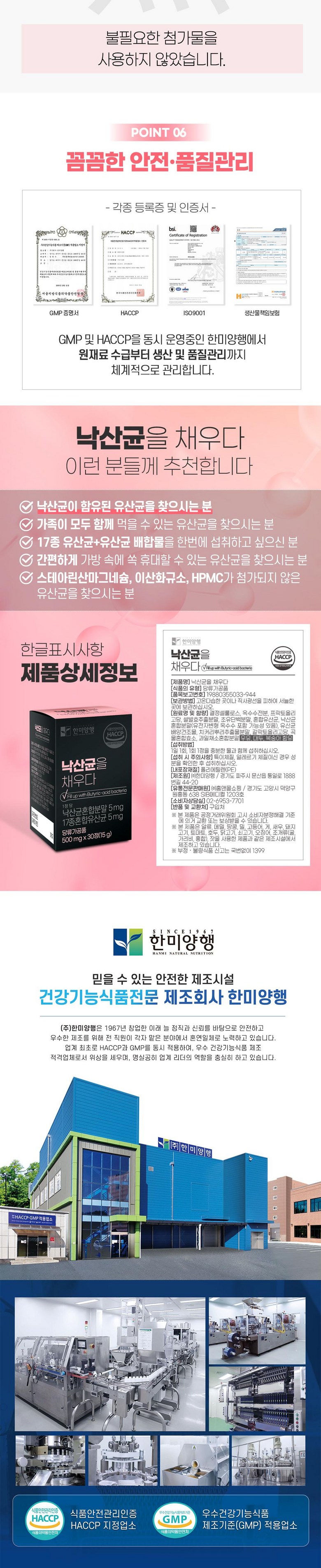 | 제품명 | 한미양행 낙산균을 채우다 | 식품의 유형 | 건강보조식품 |