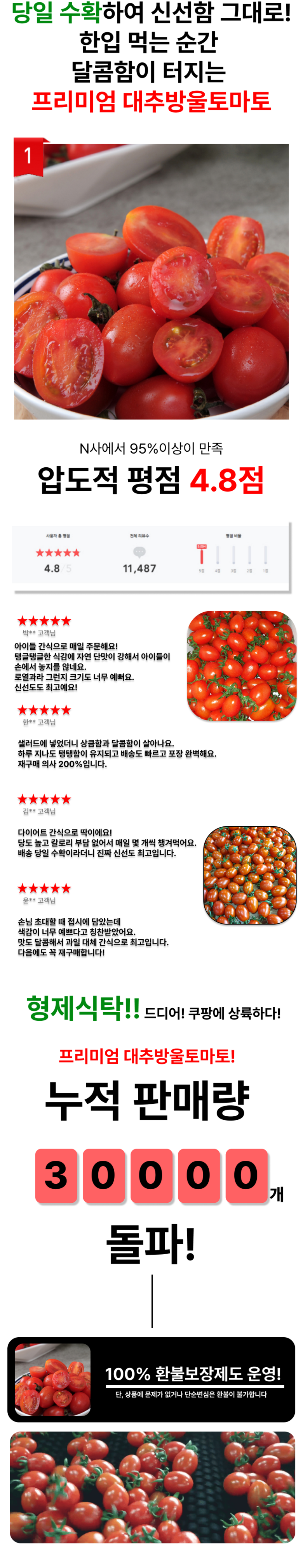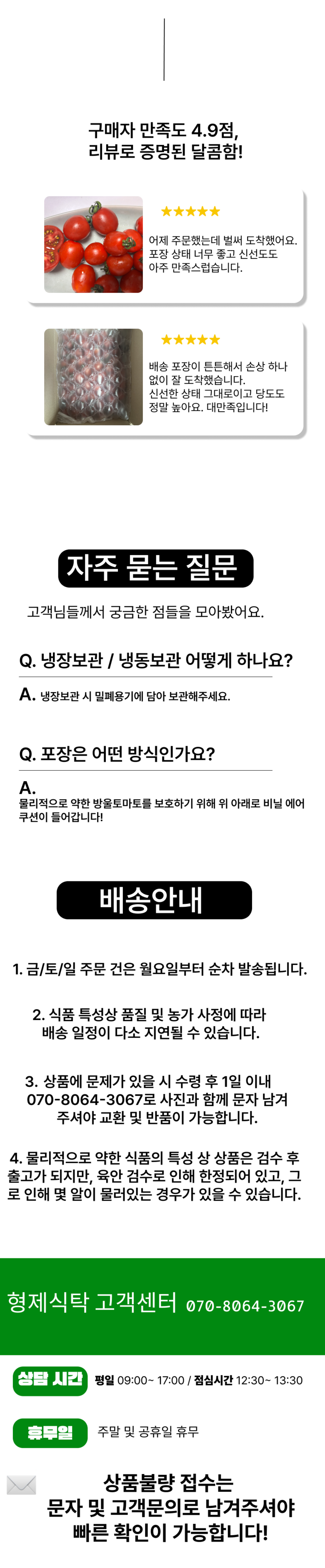 | 품목 또는 명칭 | 형제식탁 대추 방울 토마토 | 포장단위별 내용물의 용량(중량),수량,크기 | 2kg / 5kg |