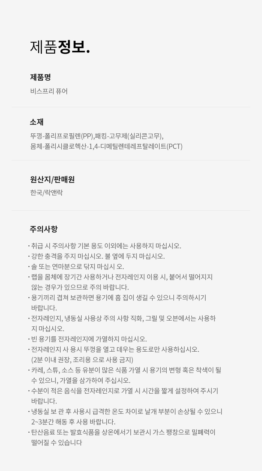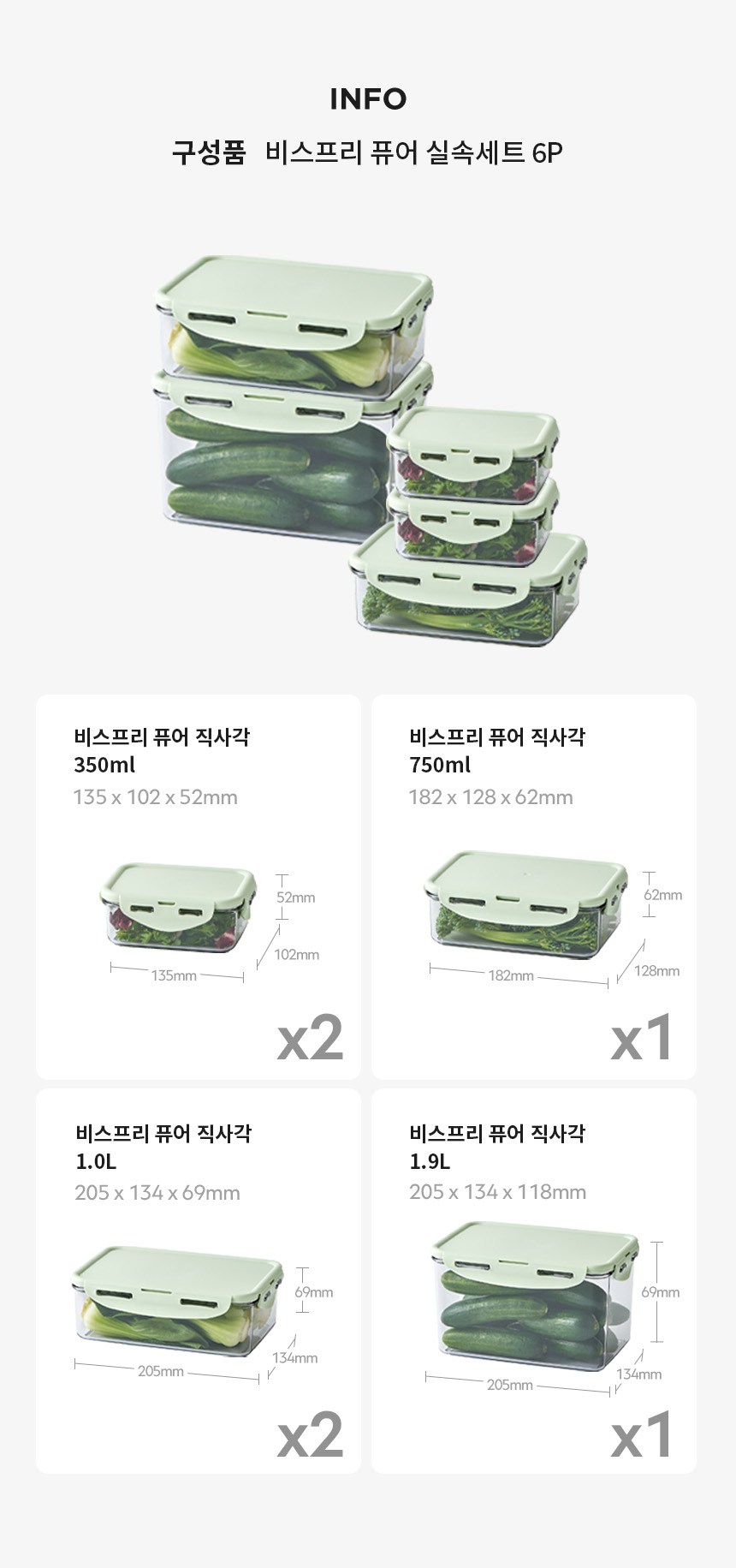 | 품명 및 모델명 | 락앤락 비스프리 퓨어 실속세트 6P | 재질 | 컨텐츠 참조 |