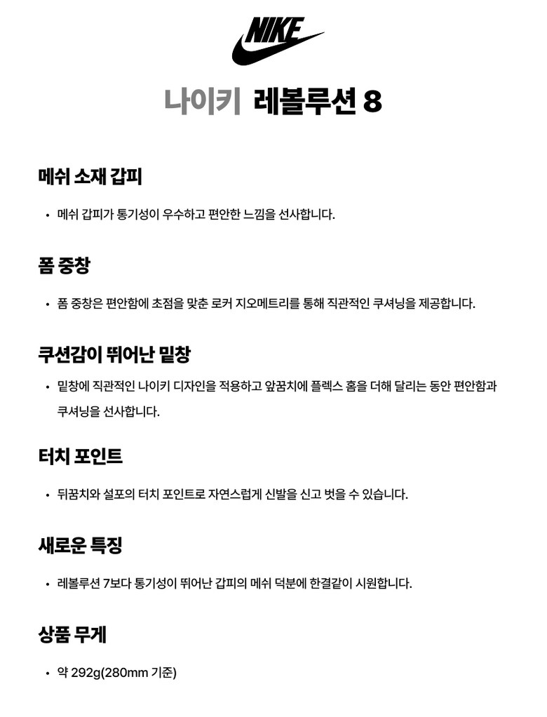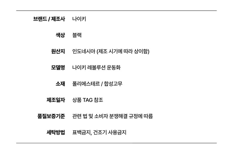 | 제품의 주소재(운동화인 경우에는 겉감,안감을 구분하여 표시) | 상품 상세페이지 참조 | 색상 | 상품 상세페이지 참조 |