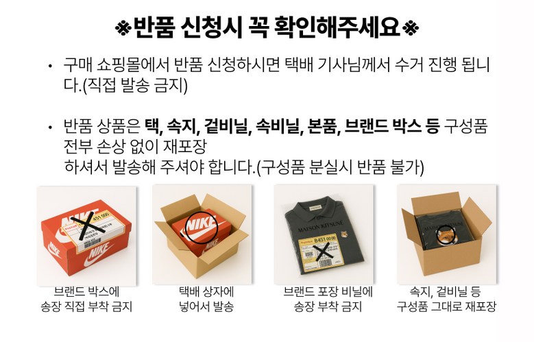 - ㆍ모니터 해상도의 차이로 인해 색상이나 이미지가 실제와 달라, 고객이 단순 변심으로 교환/반품을 무료로 요청하는 경우