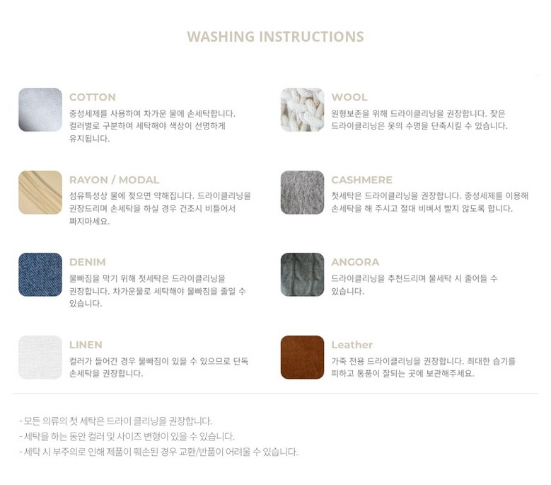 | 제조국 | 중국 | 세탁방법 및 취급시 주의사항 | 상품 상세페이지 참조 |