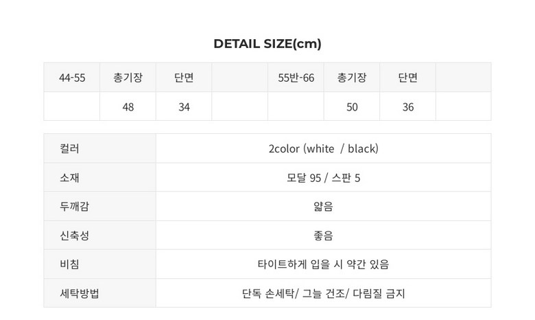 | 제품 소재 | 모달95% / 스판5% | 색상 | 흰색, 검은색 |