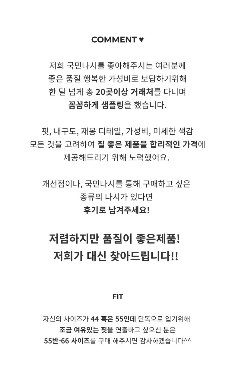 | 치수 | 상품 상세페이지 참조 | 제조자(수입자) | 국민나시 협력사 |