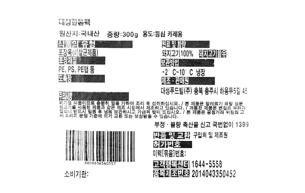 | 품목 또는 명칭 | 대성한돈팩 | 포장단위별 내용물의 용량(중량),수량,크기 | 컨텐츠 참조 |