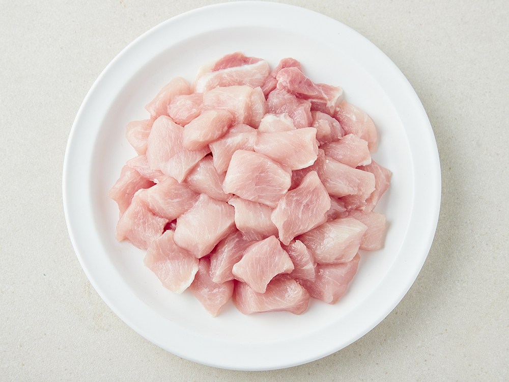 쫄깃쫄깃한 식감이 좋은 부위, 돼지고기 등심이에요. 큐브 형태로 손질되어 바로 활용할 수 있죠. 등심 특유의 담백한 풍미가 입맛을 사로잡는답니다. 카레는 물론, 다양한 볶음 요리에 넣어 촉촉하게 배어나는 육즙을 즐겨보세요.