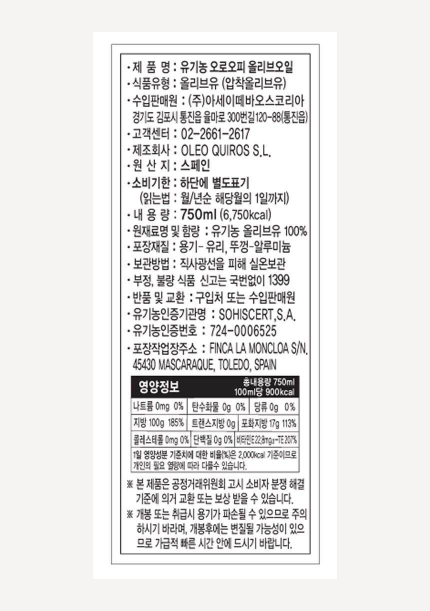 | 포장단위별 내용물의 용량(중량), 수량 | 750ml, 1개 | 원재료명 및 함량 | 컨텐츠 참조 |