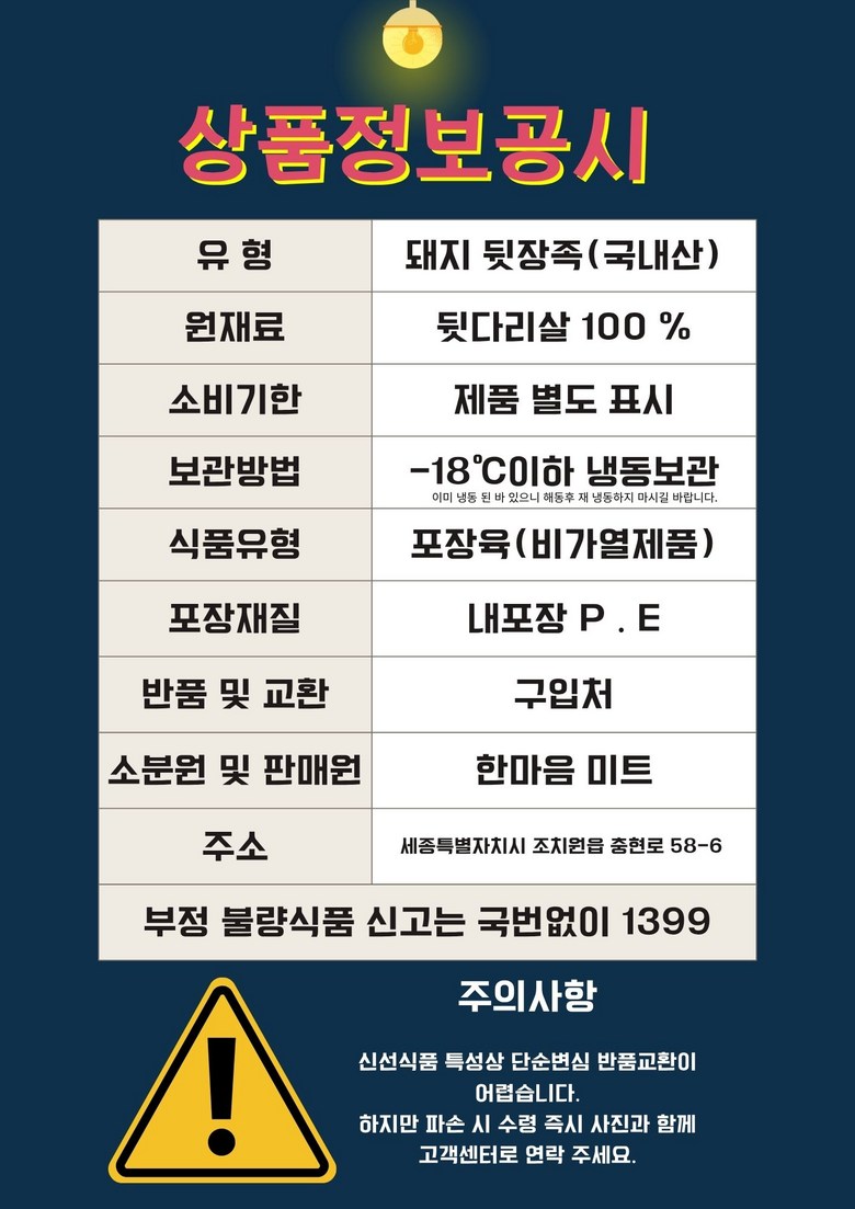 상호/대표자 | 한마음미트 / 이낙희 | 사업장 소재지 | 세종특별자치시 조치원읍 충현로 58-6 한마음미트 |