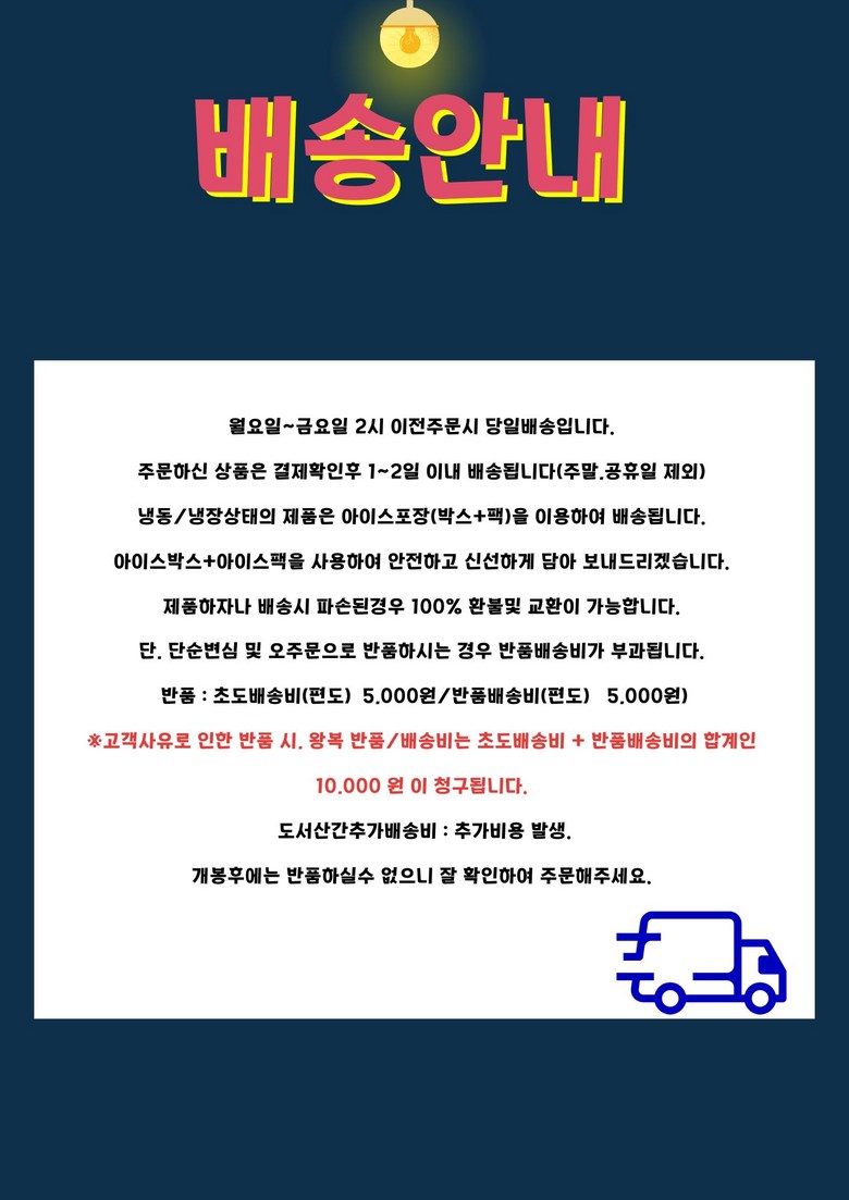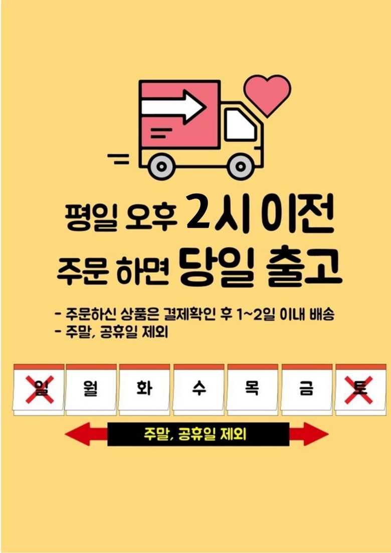 - ㆍ모니터 해상도의 차이로 인해 색상이나 이미지가 실제와 달라, 고객이 단순 변심으로 교환/반품을 무료로 요청하는 경우