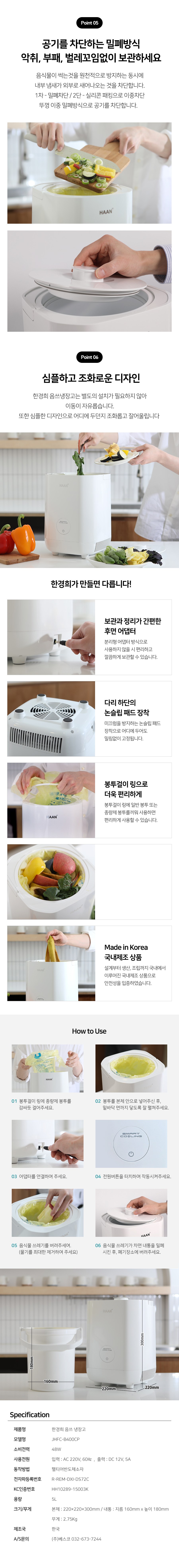| 품명 및 모델명 | 한경희이지라이프 음식물 쓰레기 냉장고/JHFC-B400CP | KC 인증정보 | 본품 - R-R-byg-BFC-5000, 어댑터 - 리뉴얼 전 :어댑터:JH10121-21002D, R-R-5sP-JDLS-60WB / 리뉴얼 후: R-REM-DXI-DS72C , HH10289-15003K |