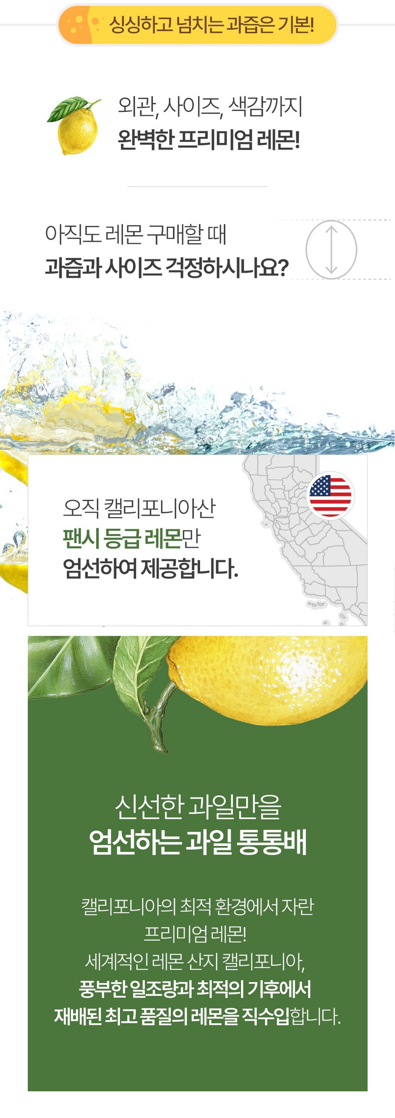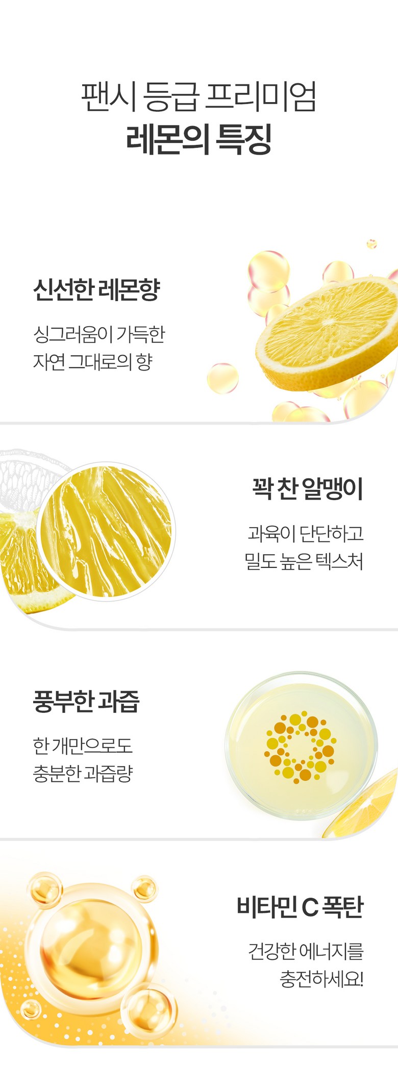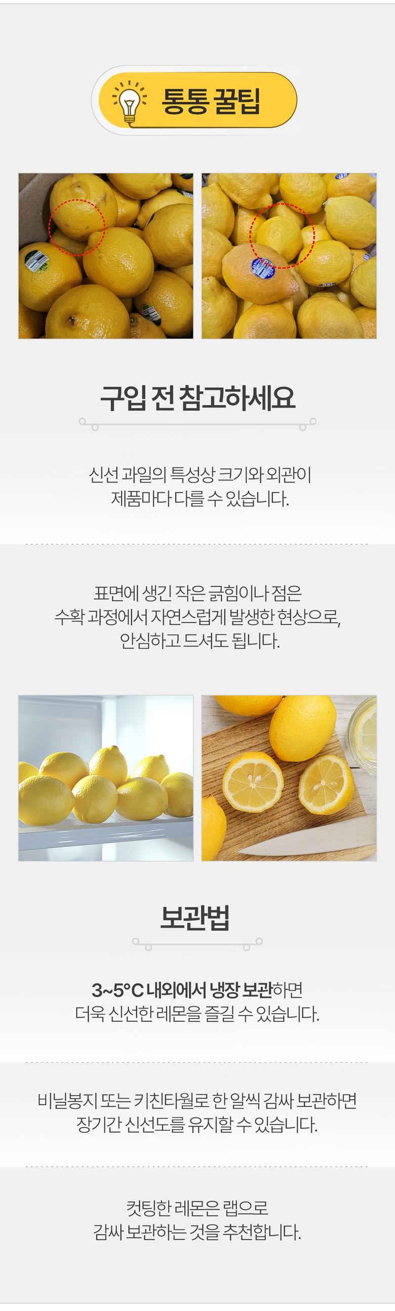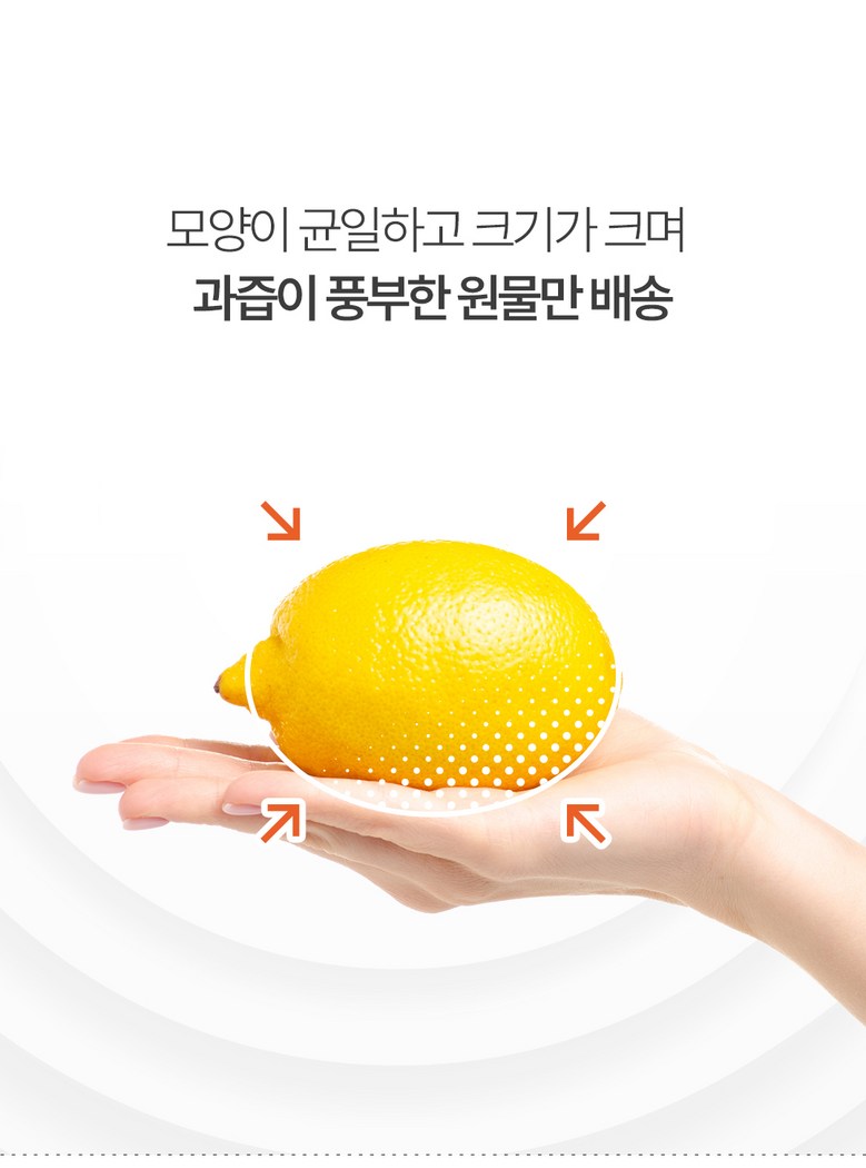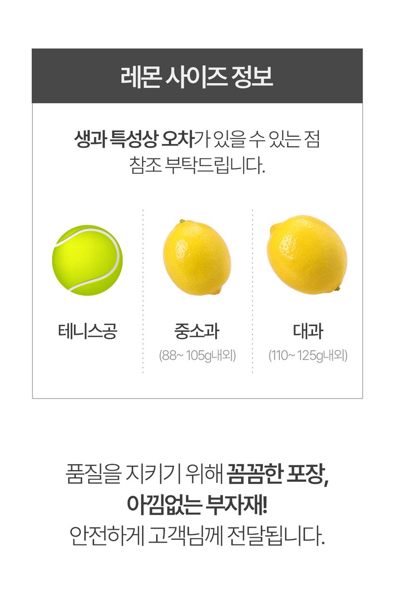 | 품목 또는 명칭 | 레몬 | 포장단위별 내용물의 용량(중량),수량,크기 | 20과 중소과 사이즈, 개당 88~105g 내외 20과 대과 사이즈, 개당 110~125g 내외 |