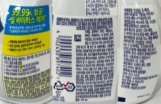 | 품목 및 제품명 | 탈취제, 살균제 / 페브리즈 섬유탈취제 (산뜻한 향) | 용도(표백제의 경우 계열을 함께표시) 및 제형 | 일반용-물체용,일반용-일반물체용 / 분사형(분무기형) |
