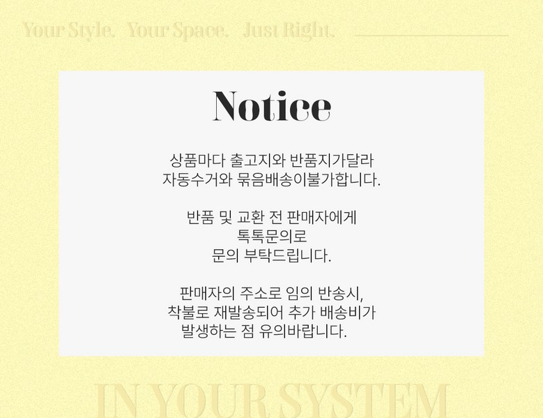 - ㆍ모니터 해상도의 차이로 인해 색상이나 이미지가 실제와 달라, 고객이 단순 변심으로 교환/반품을 무료로 요청하는 경우