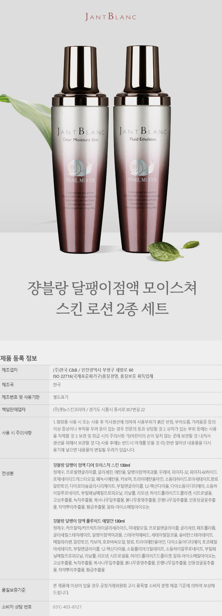 | 용량(중량) | 스킨 130ml / 로션 130ml | 제품 주요 사양 | 모든 피부타입 |