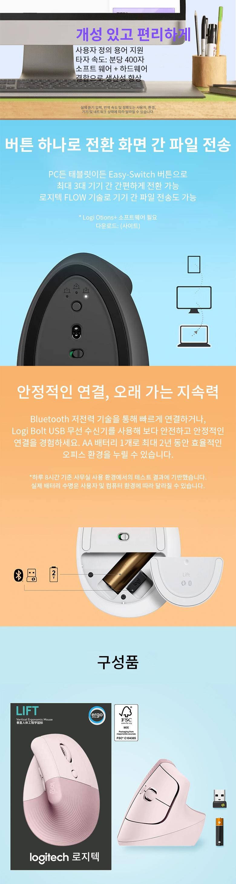 로지텍 LIFT 버티컬 에르고노믹 무선 마우스