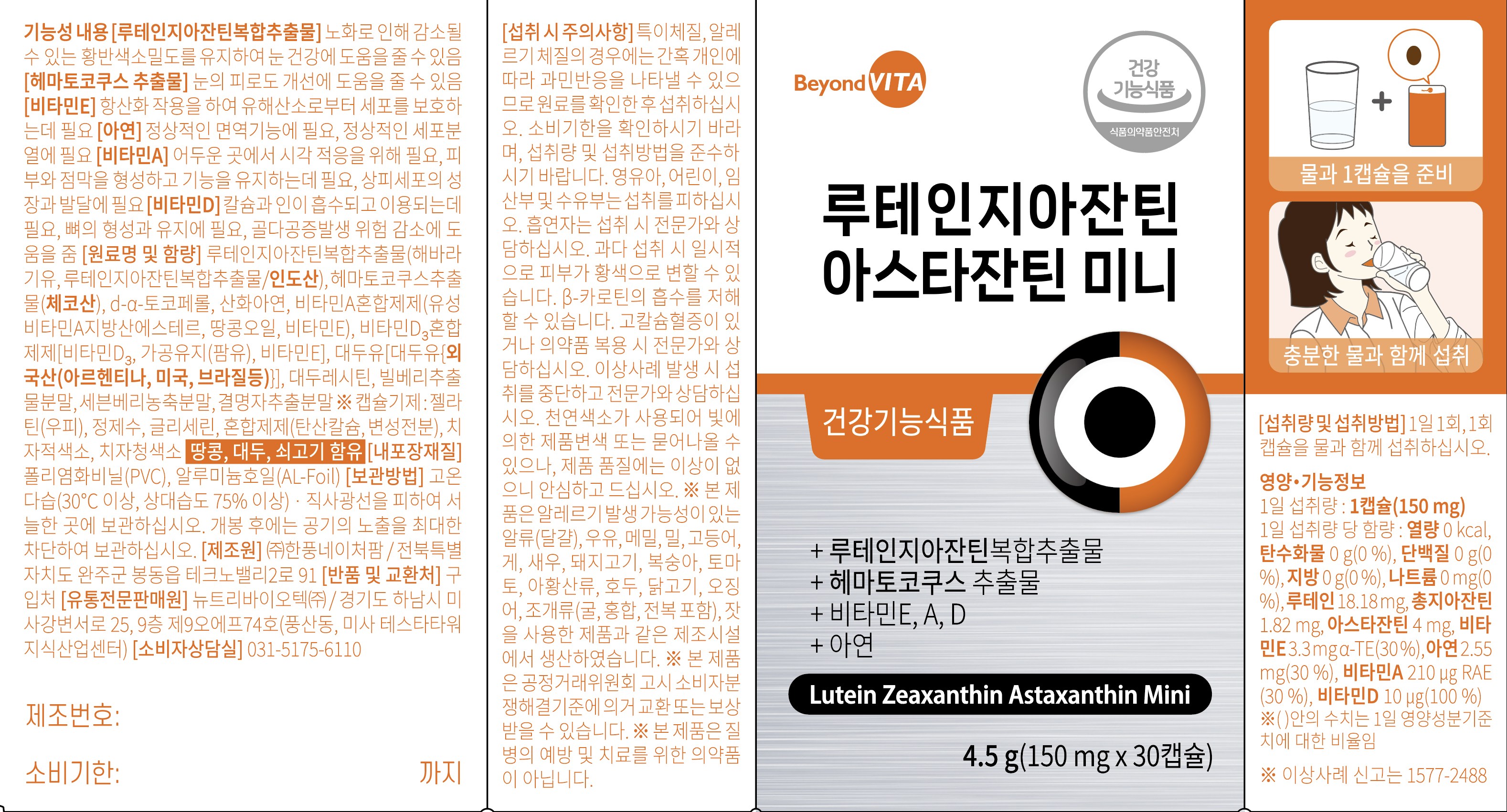 | 제품명 | 루테인지아잔틴 아스타잔틴 미니 | 제조업소의 명칭과 소재지 | 컨텐츠 참조 |