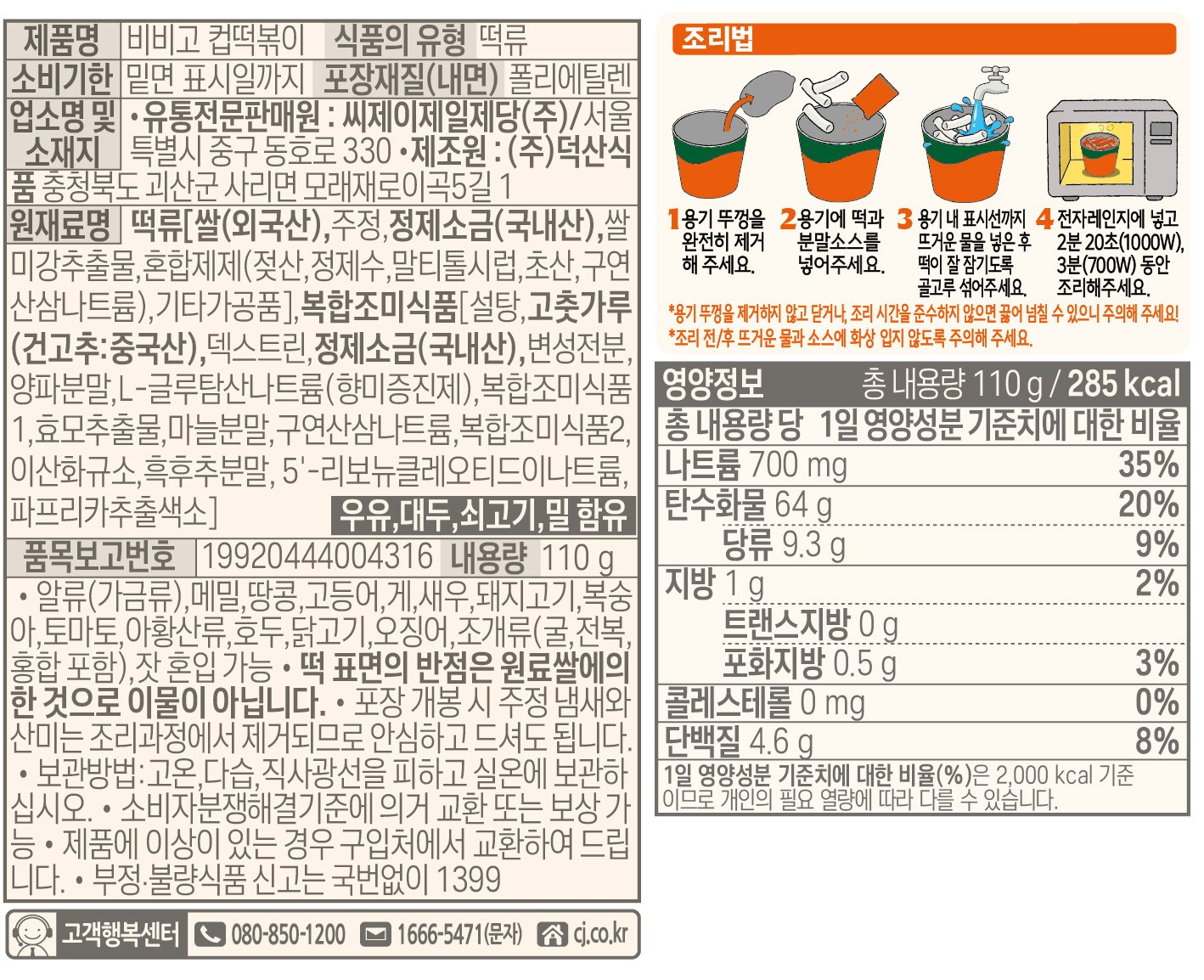 - 섭취방법: 즉석완조리식품