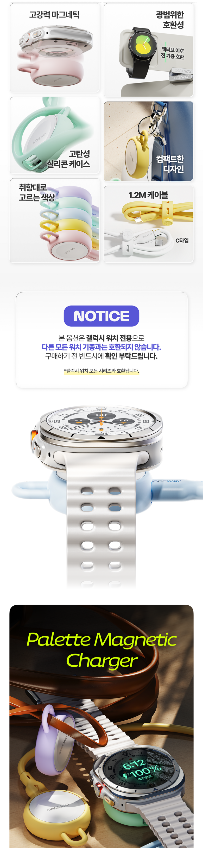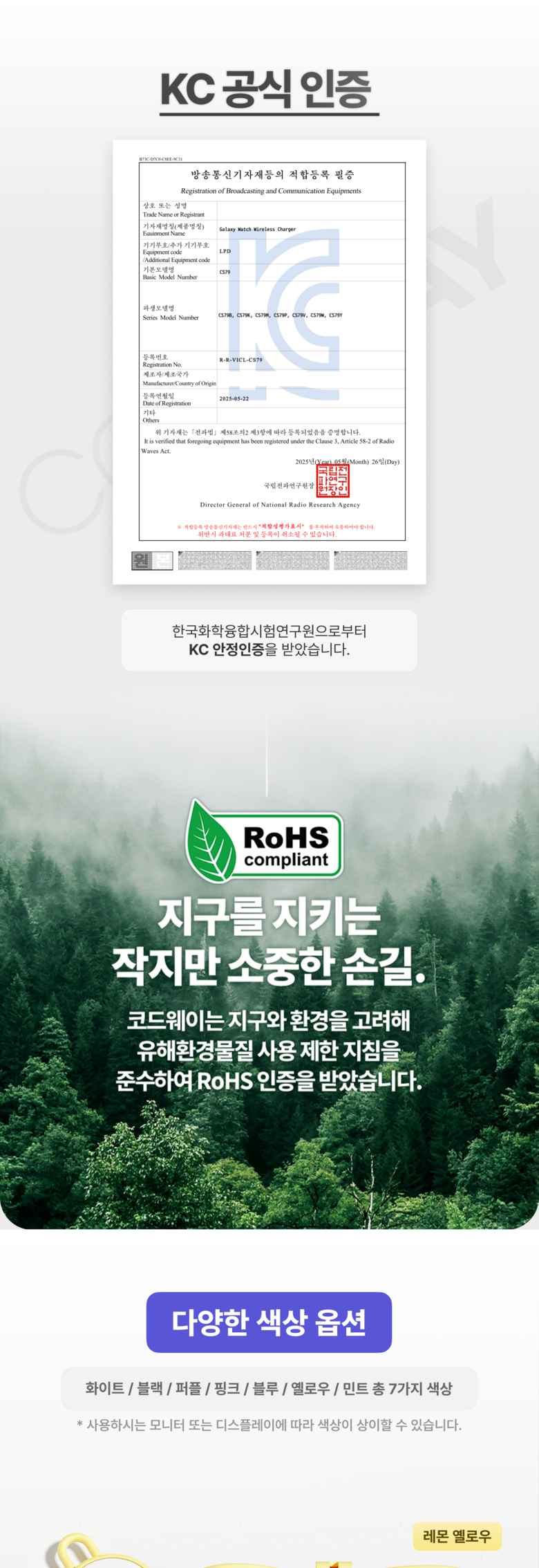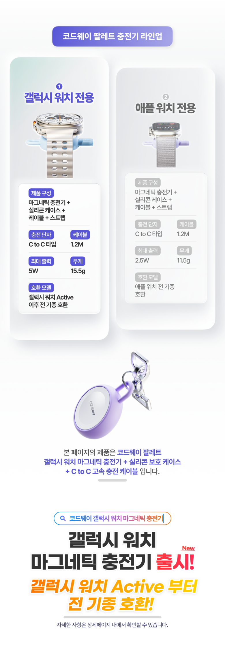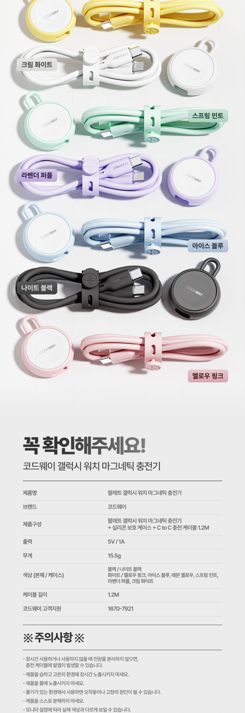 | 품명 및 모델명 | 코드웨이 팔레트 갤럭시 워치 마그네틱 충전기 | KC 인증정보 | 상품 상세페이지 참조 |