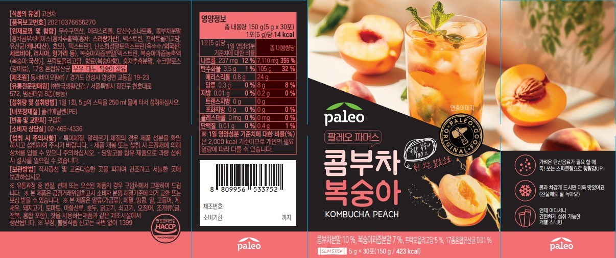 | 제품명 | 콤부차 복숭아 | 식품의 유형 | 컨텐츠 참조 |