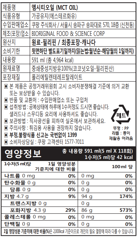 제품 설명 : 재로우 포뮬러스의 MCT오일은 caprylic(C8)과 Capri(C10) 지방산의 원천입니다.