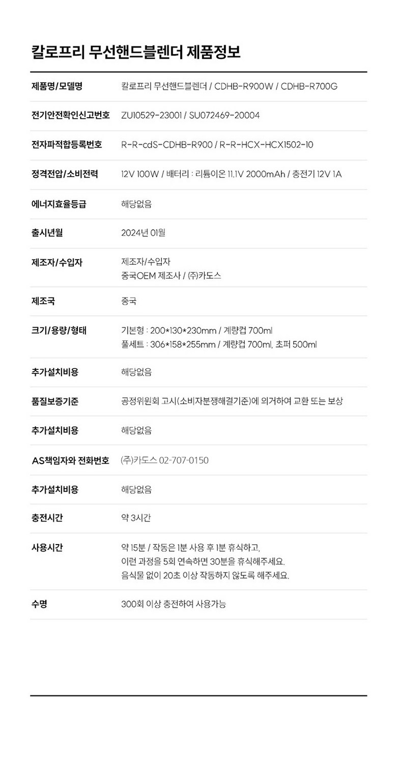 | 정격전압, 소비전력 | 상품 상세페이지 참조 | 에너지소비효율등급 | 해당사항없음 |