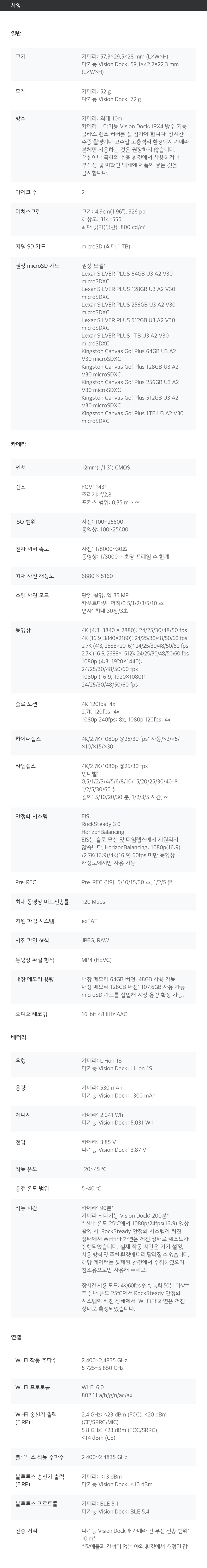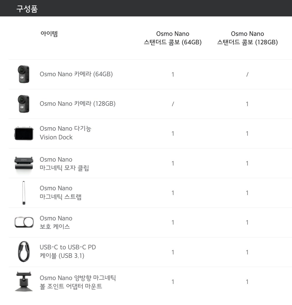 | 품명 및 모델명 | Osmo Nano 스탠더드 콤보 (128GB)/ OD001 | KC 인증정보 | R-R-osm-OD001, R-C-osm-ON001 |