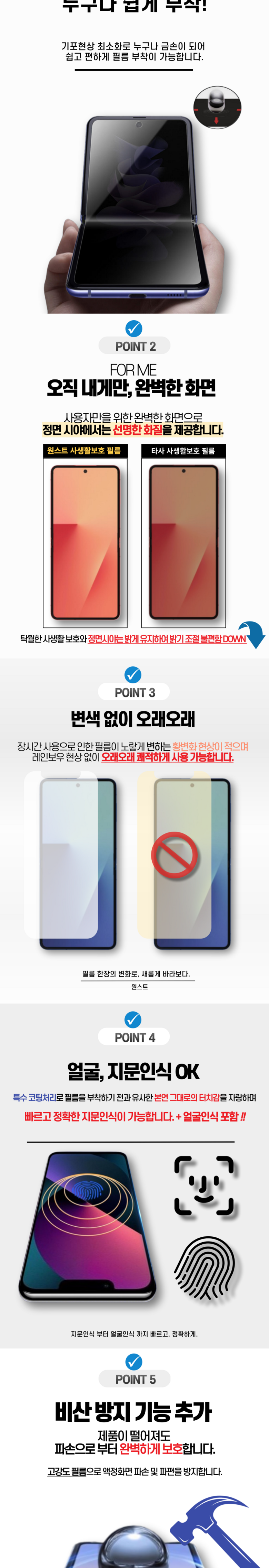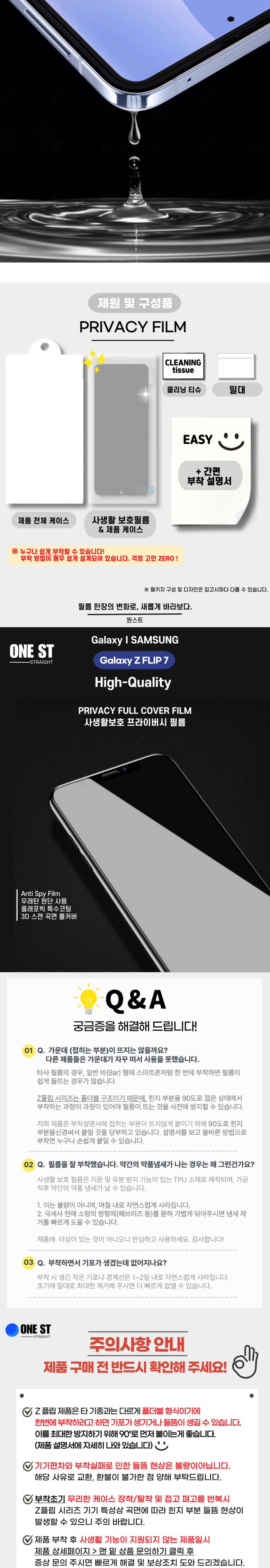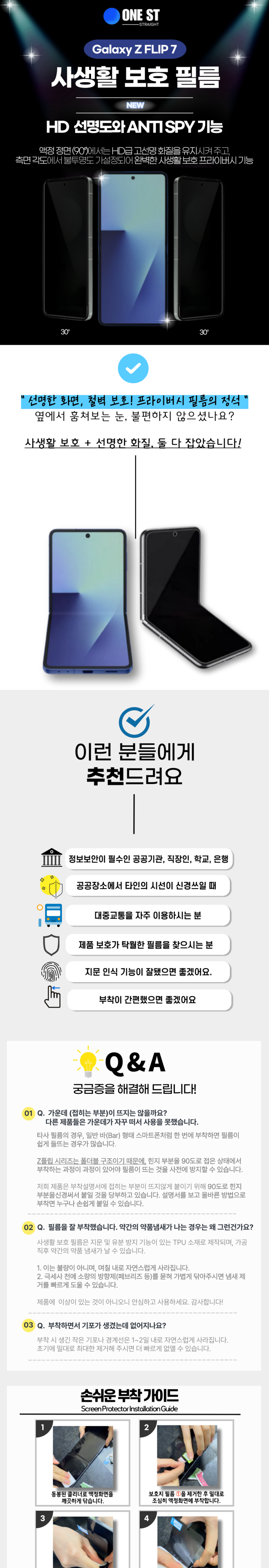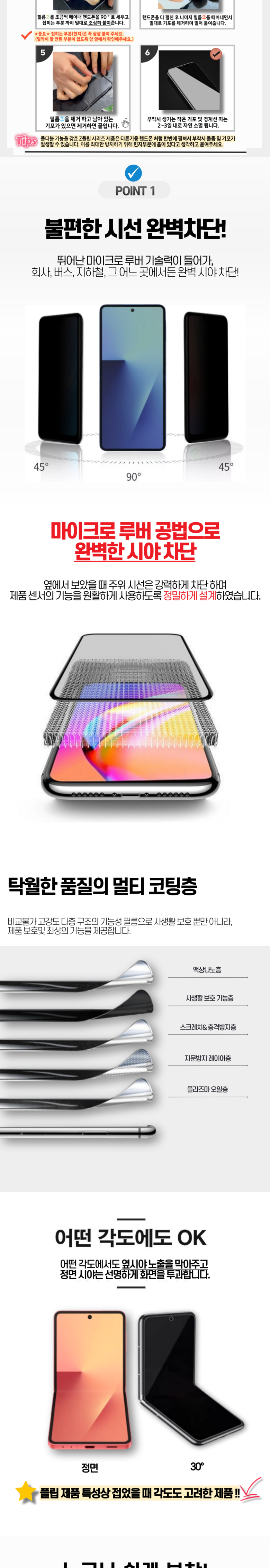 원스트 갤럭시 Z플립7 고화질 HD 사생활 보호 지문방지 스크레치 차단 프라이버시 액정보호필름