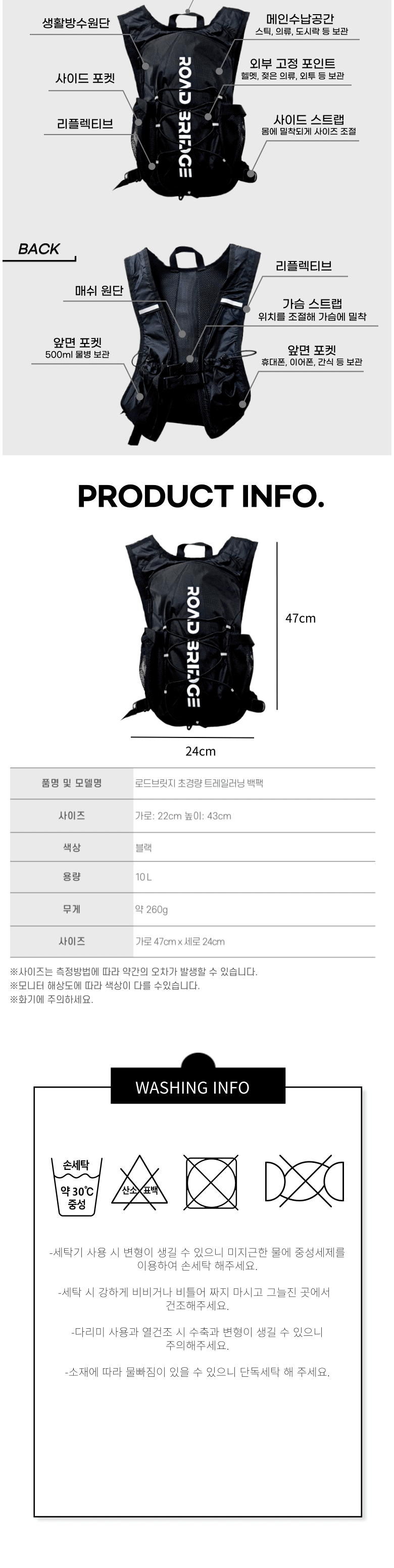 | 품명 및 모델명 | 로드브릿지 초경량 트레일러닝 백팩 10L | 인증/허가 사항 | 해당사항 없음 |
