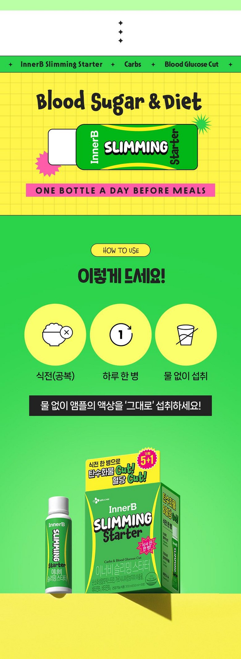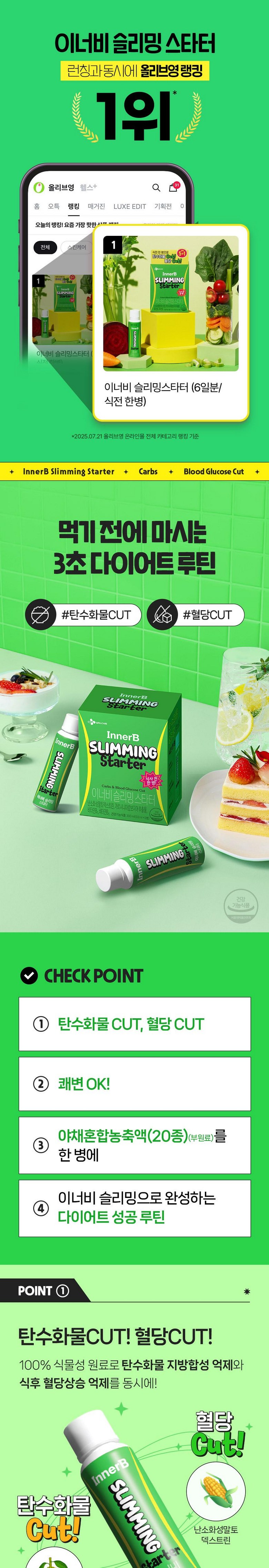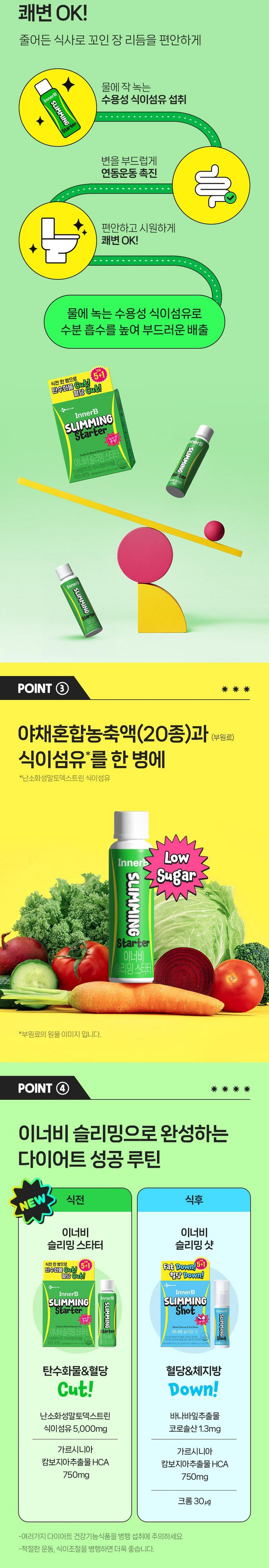 | 제품명 | 이너비 슬리밍 스타터 | 제조업소의 명칭과 소재지 | "■ •유통전문판매원: 씨제이웰케어(주) / 서울특별시 중구 세종대로 14 그랜드센트럴 5, 6층■ 제조원 : (주)노바렉스2공장 / 충북 청주시 청원구 오창읍 각리1길 60" |