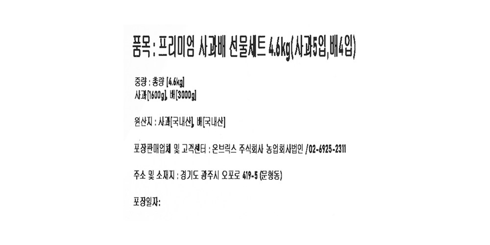 - 구성품: 사과 5p + 배 4p