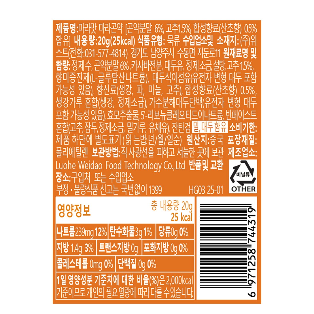 | 포장단위별 내용물의 용량(중량), 수량 | 20g, 20개 | 원재료명 및 함량 | 컨텐츠 참조 |