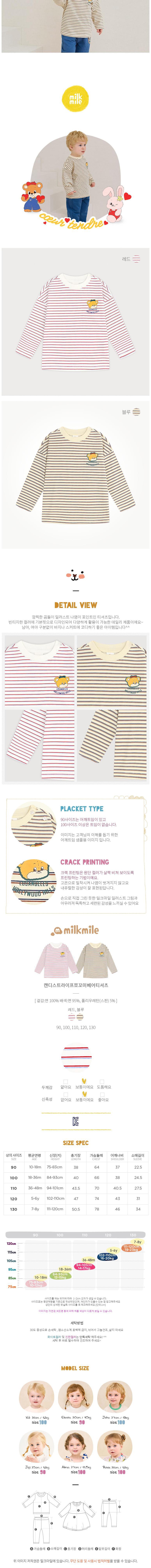 | 품명 및 모델명 | [밀크마일] 캔디스트라이프쪼꼬미베어티셔츠 레드 110 | KC 인증정보 | 유/KC마크 |