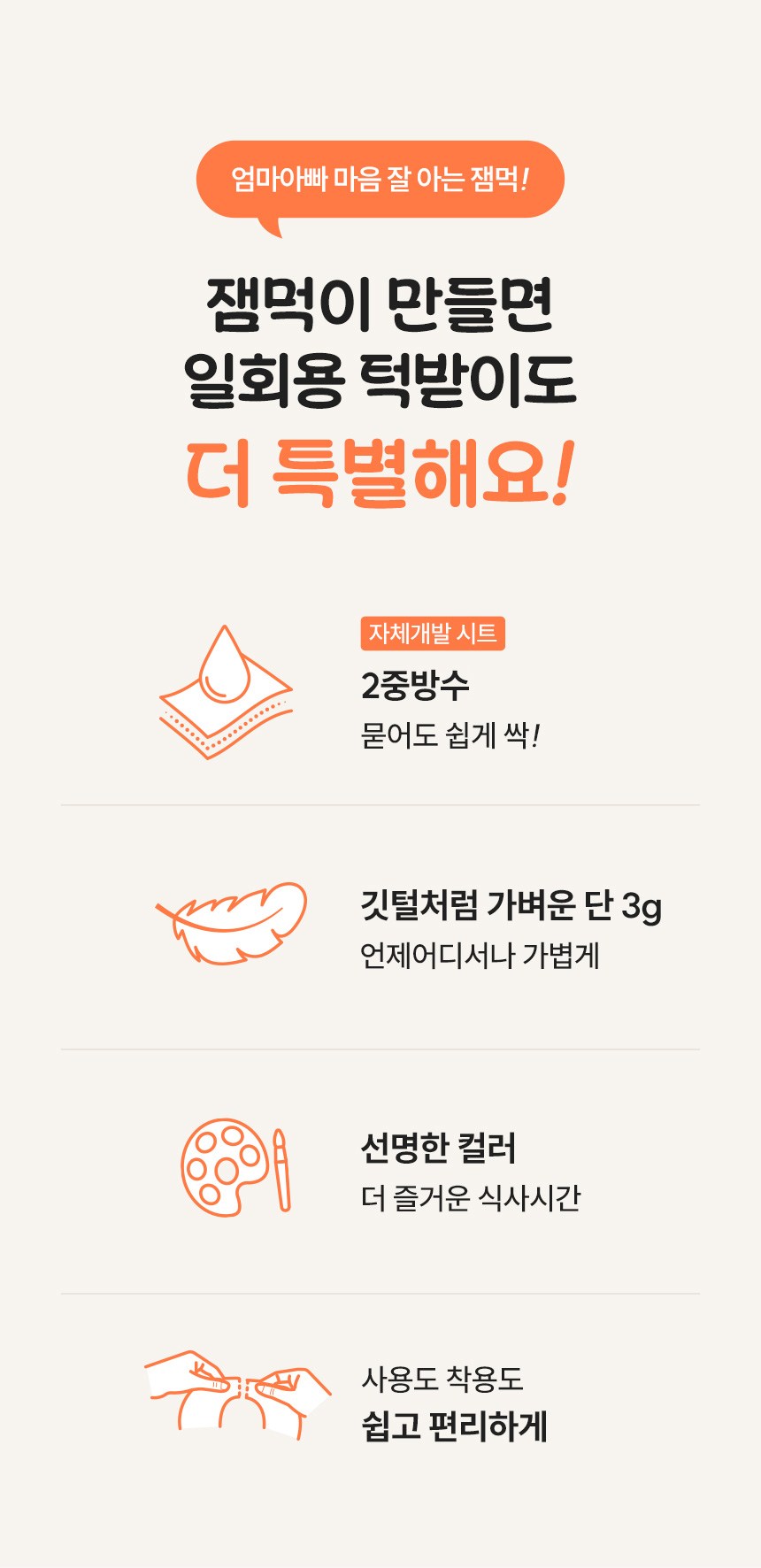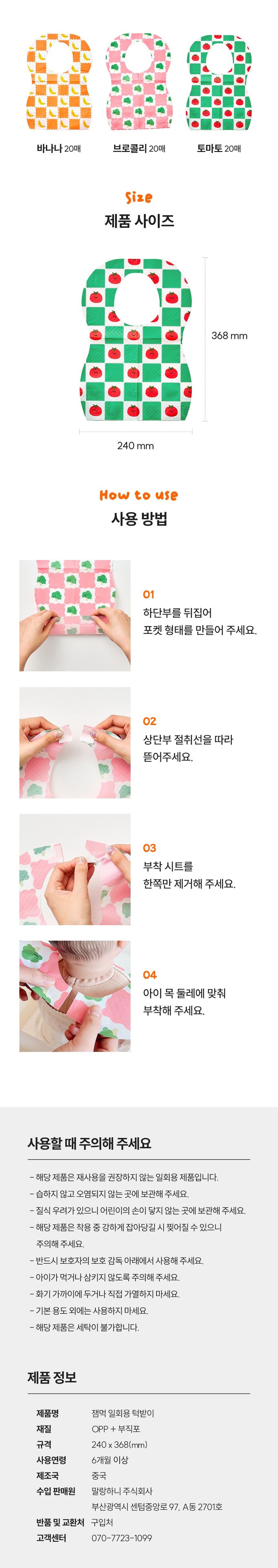 | 품명 및 모델명 | 잼먹 2중방수 일회용 턱받이 | KC 인증정보 | 유/KC마크 |