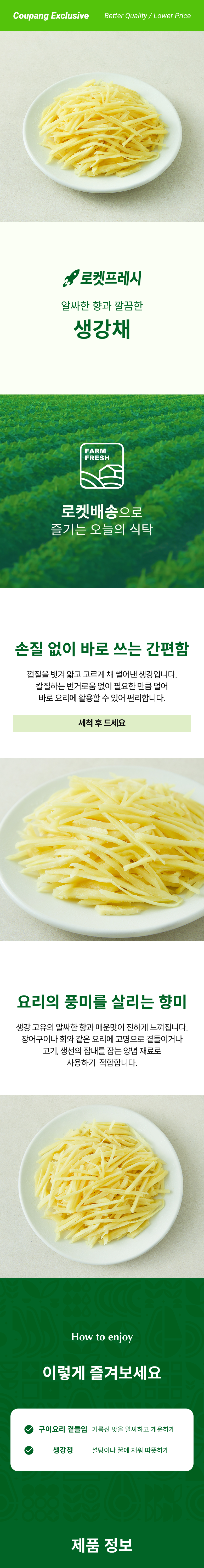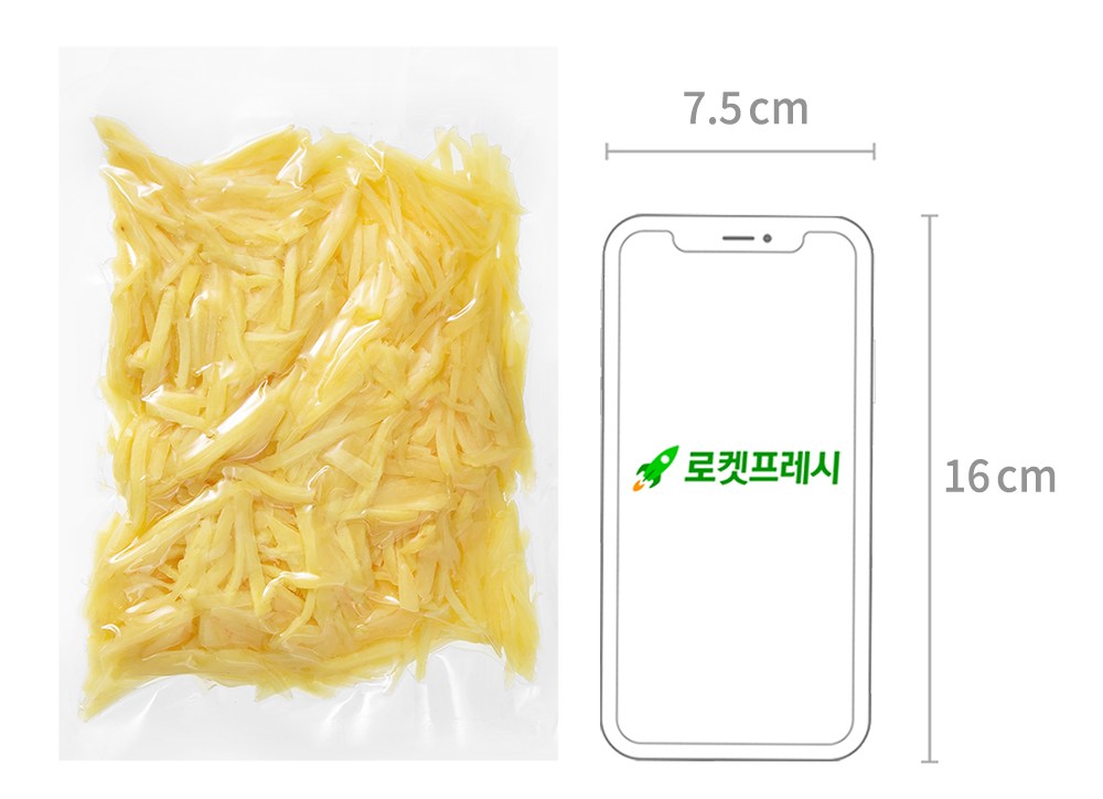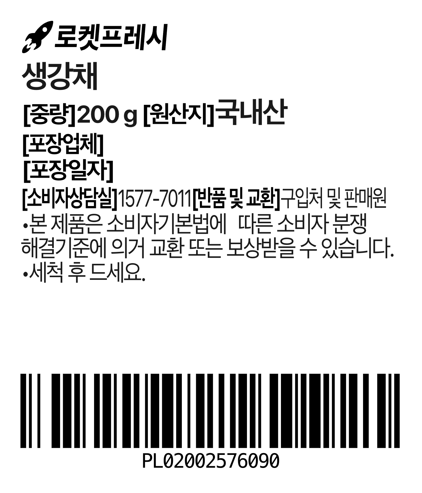 | 품목 또는 명칭 | 생강채 | 포장단위별 내용물의 용량(중량),수량,크기 | 200g, 1개 |